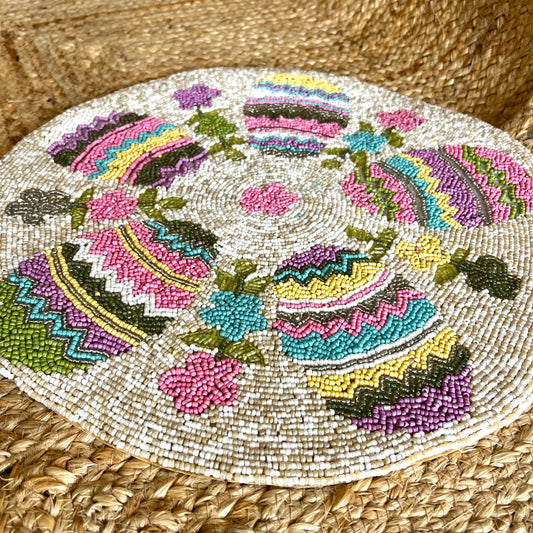 Pink Pastel Floral Round Handcrafted Beaded Placemat- 14-inch Round Decorative Table Mat