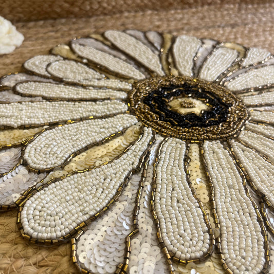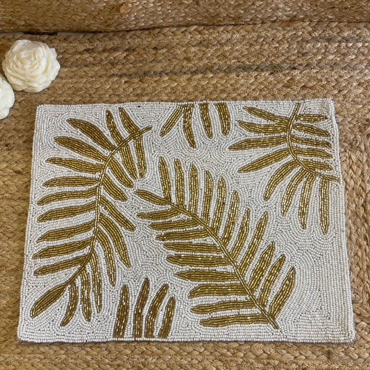 Black White Leaf Butterfly Glass Beaded Table Placemat