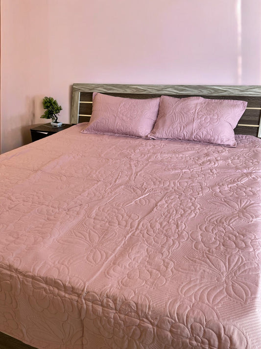 Pink Solid Quilted Cotton Bedcover with 2 Pillow Covers