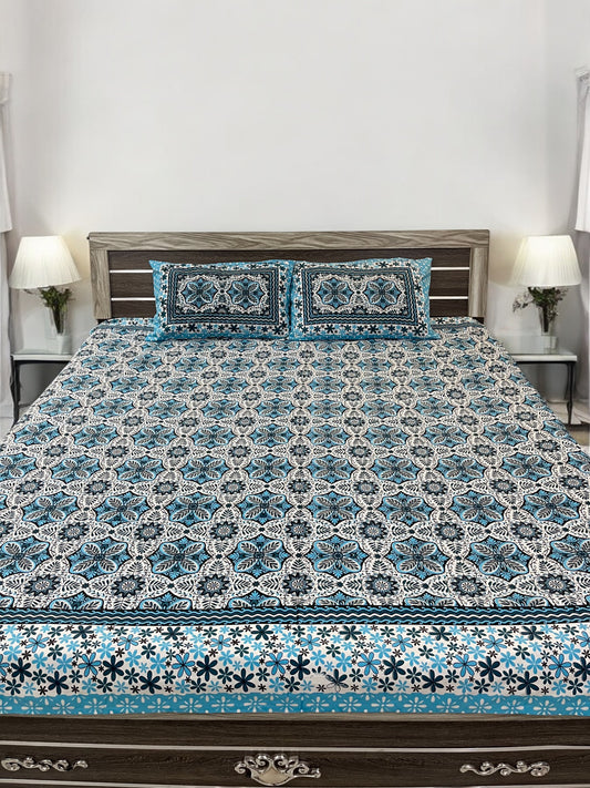 Blue Floral Double Bedsheet with 2 Pillow Cover