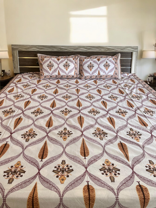 Beige Floral Double Bedsheet with 2 Pillow Cover
