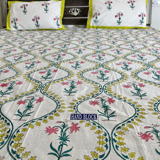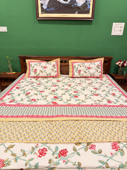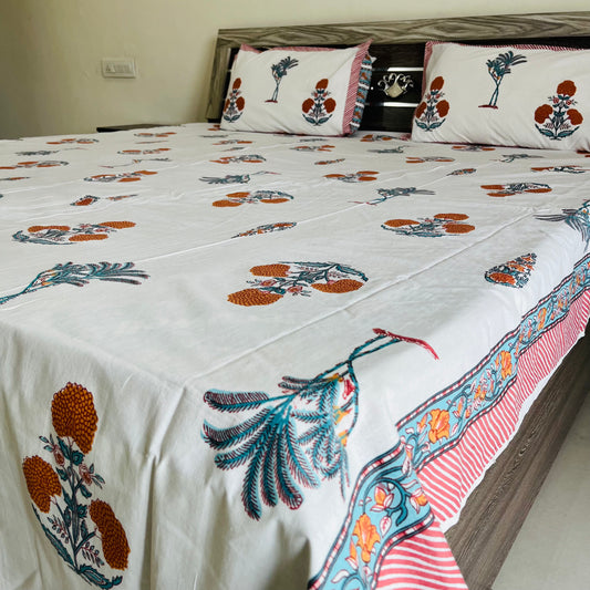 Multicolor Premium Cotton Handblock Double Bedsheet