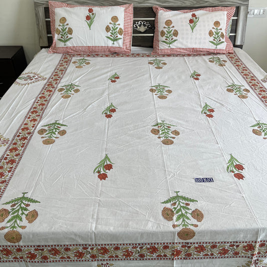 Red Bunch Floral Premium Cotton Double Handblock Bedsheet