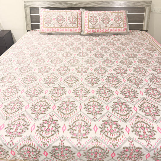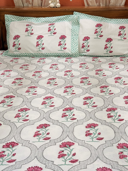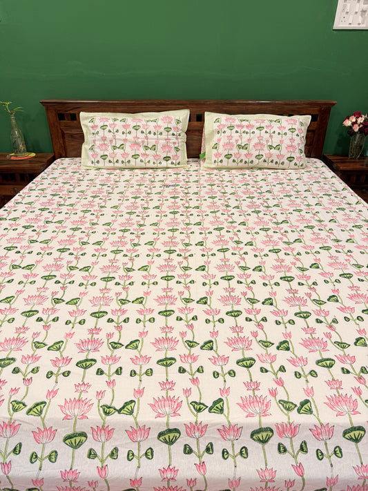 Pink Lotus Premium Cotton Double Handblock Bedsheet