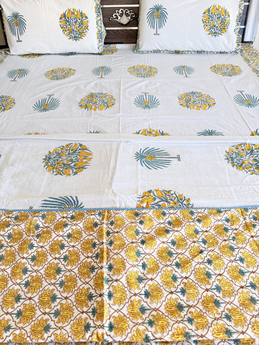Yellow marigold Handblock Printed Cotton Bedsheet