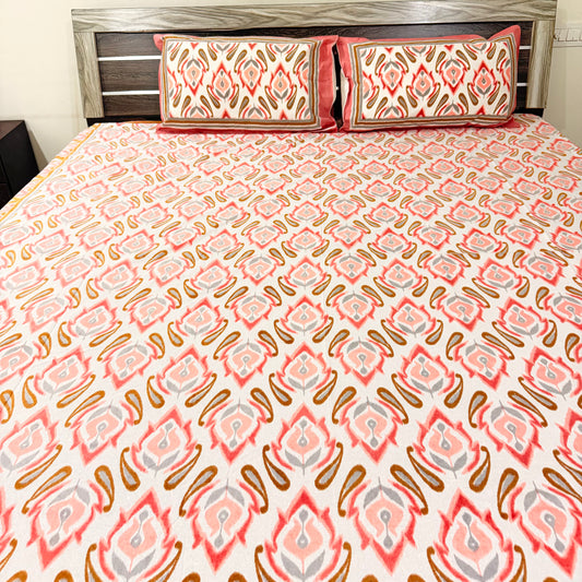 Pastel Red Premium Cotton Handblock Double Bedsheet