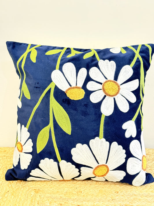 Velvet Blue Embroidery Festive Decorative cushion cover