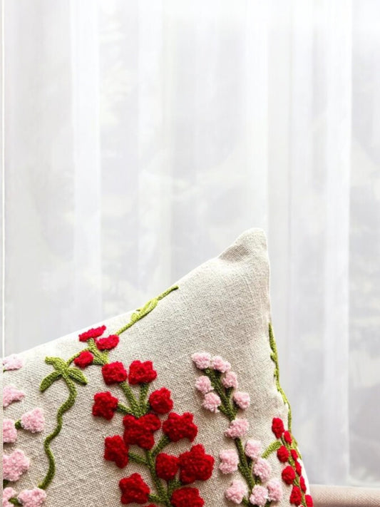 PINK AND WHITE BUNCH EMBROIDERY CUSHION COVER