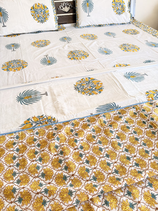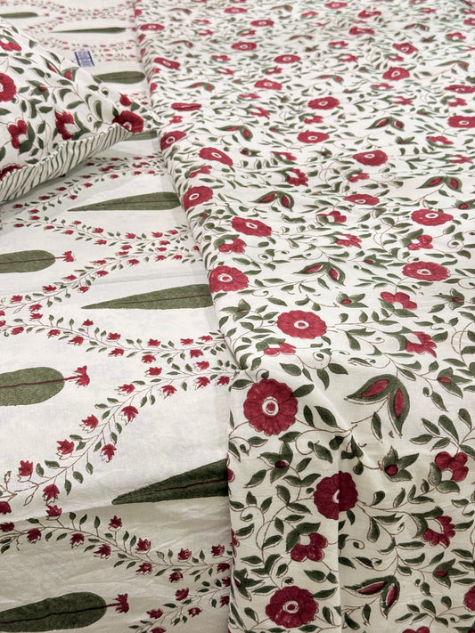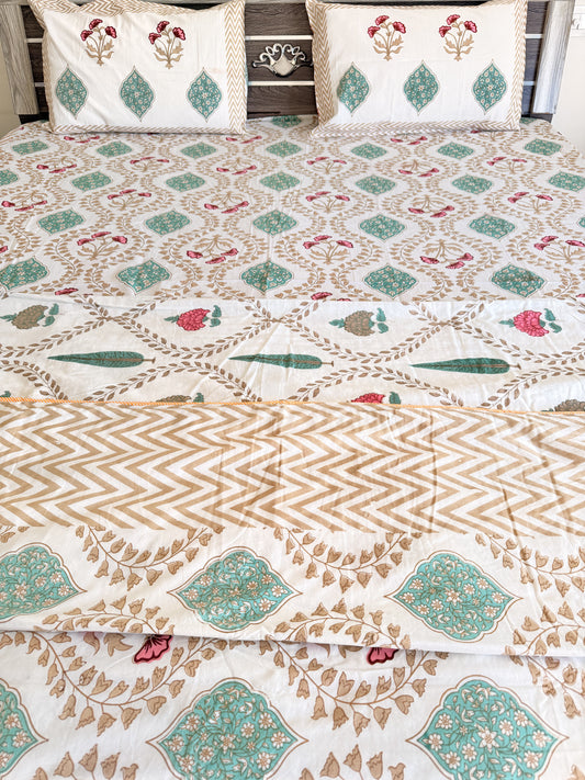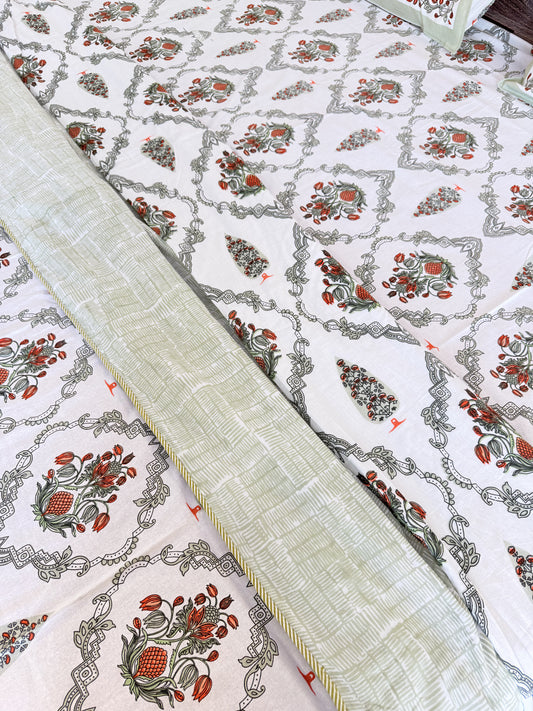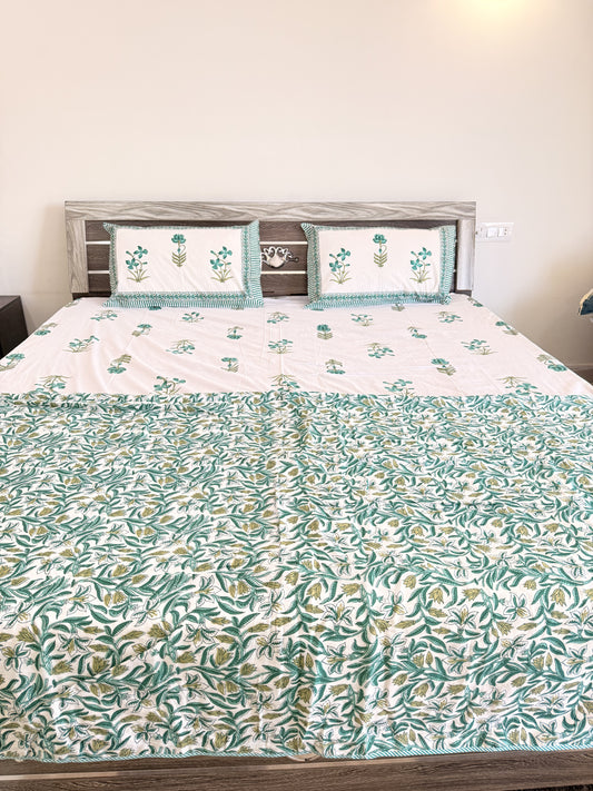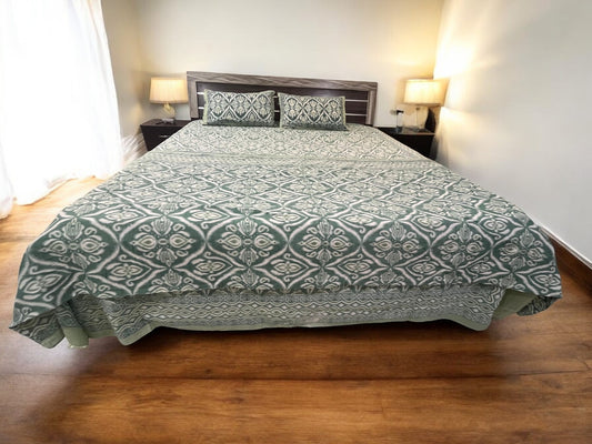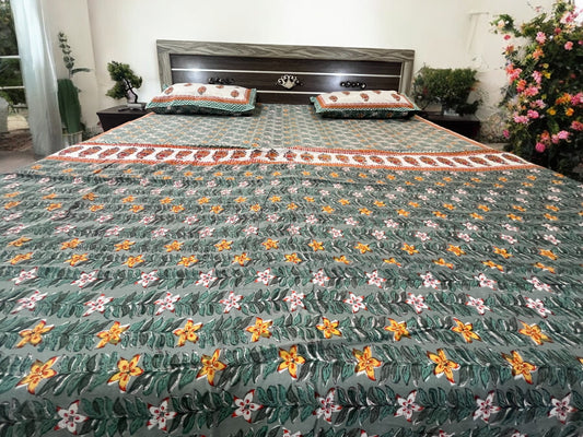 Green Cotton hand block Double Dohar With Double Bedsheet