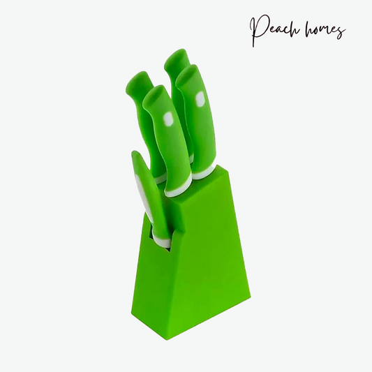 Plastic Kitchen Knife Set with Holder (5-Pieces)