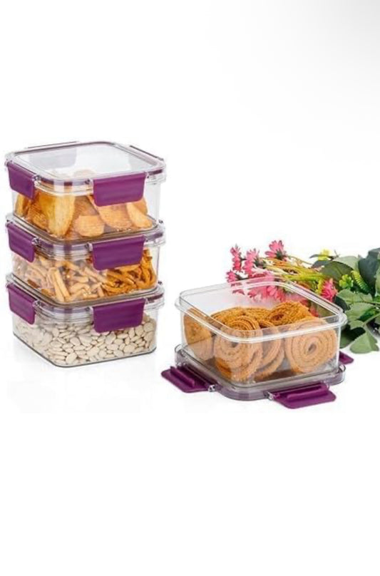 Airtight Flat Storage Containers Set for Kitchen – BPA-Free, Freezer Safe, 450 ml, Purple (Pack of 4) for Pantry Organization