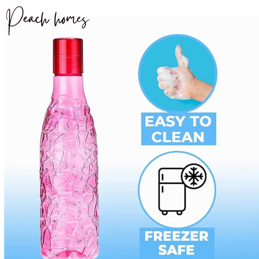 Plastic Transparent Mosaic Pink Water Bottle (Set of 6) – Leak-Proof, Reusable, Stylish Hydration Bottles