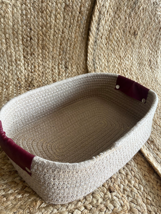 Small Jute Plant Basket Organizer – Dual Tone Beige & White | Household Storage Basket