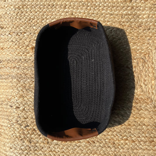 Jute Braided Multipurpose Storage Basket Organizer with Handles – Black & Jute
