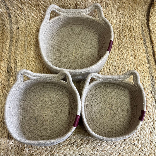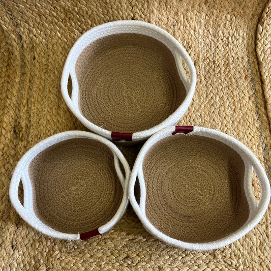 Jute Storage Baskets Multi-Purpose Organizer – Pure White (Set of 3: Small, Medium, Large)