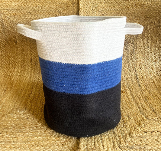 Jute Laundry Storage Basket Organizer with Handles - Blue Black