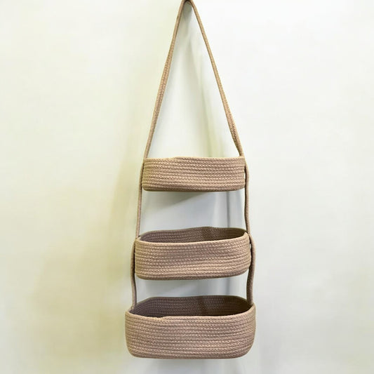 3-Tier Jute Wall Hanging Storage Basket organizer - Beige