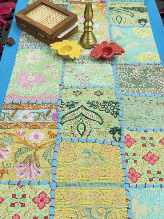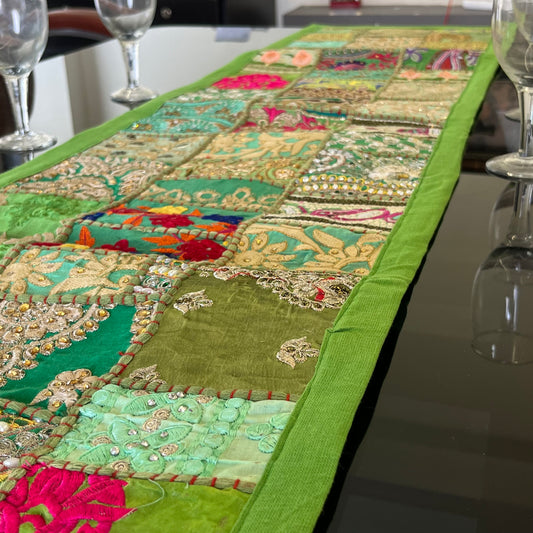 Parrot Green Kambadiya Patchwork Rajasthani Table Runner