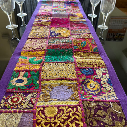 Purple Kambadiya Patchwork Rajasthani Table Runner