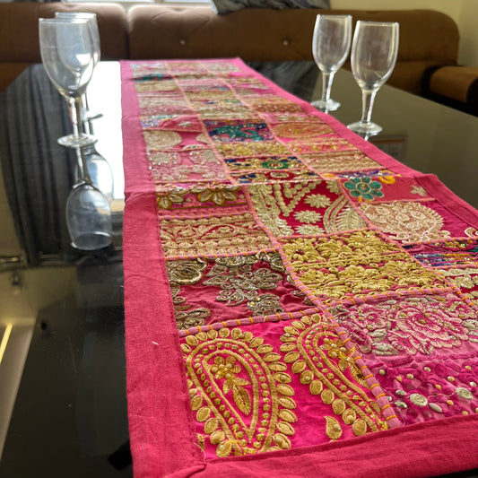 Pink Kambadiya Patchwork Rajasthani Table Runner