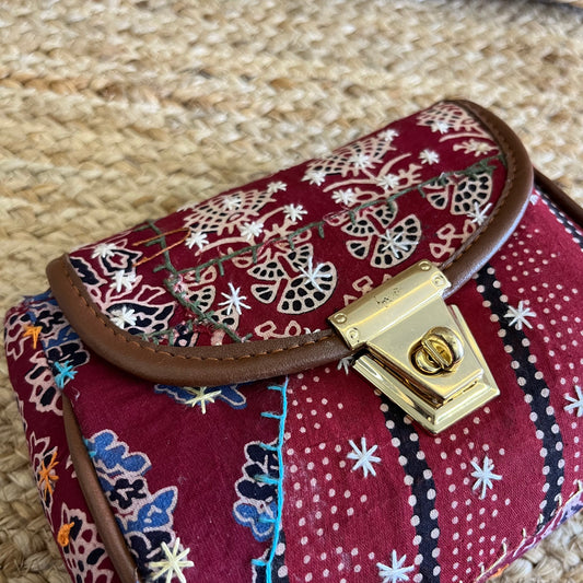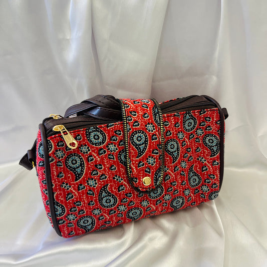 Red Floral Geometric Handblock Printed Sling Bag