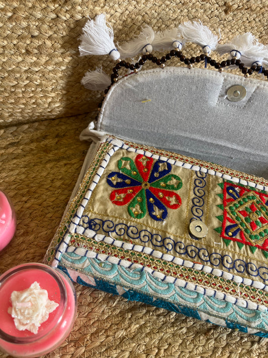 Multi Color Hand Embroidered Patchwork Sling Bag