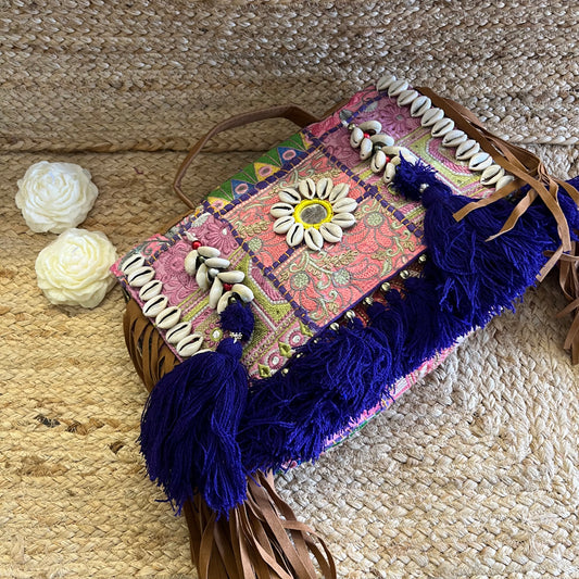 Purple Tasseled Boho Sling with Detachable Sling
