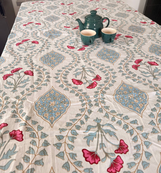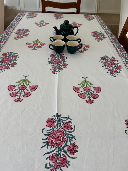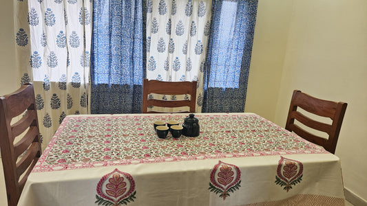 Floral Handblock Table Cover – 60x90 Inches for 6-Seater Dining Tables