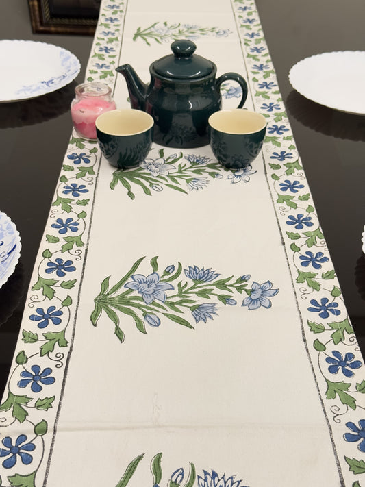 Blue Flower Pure Cotton Rajasthani Handblock Table Runner