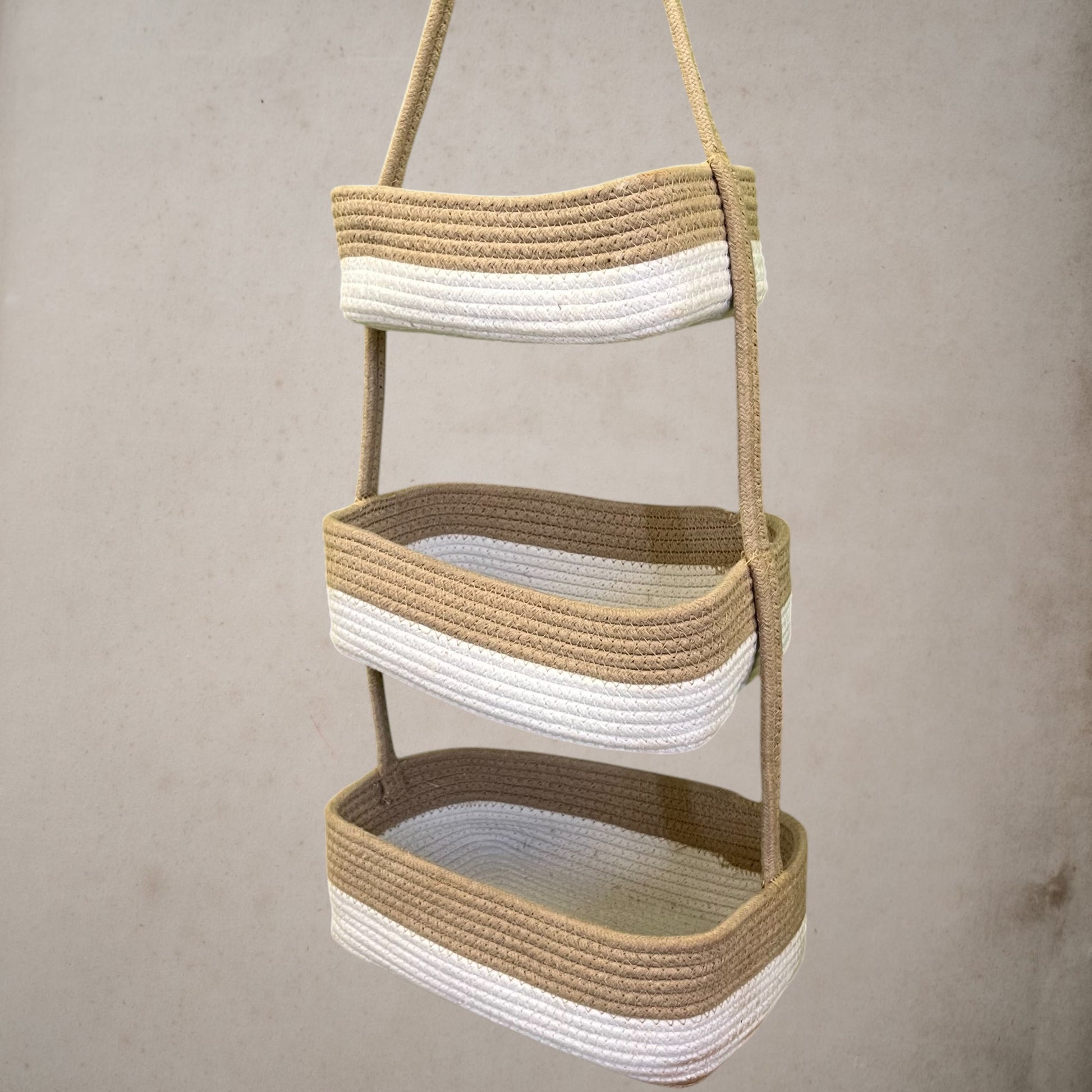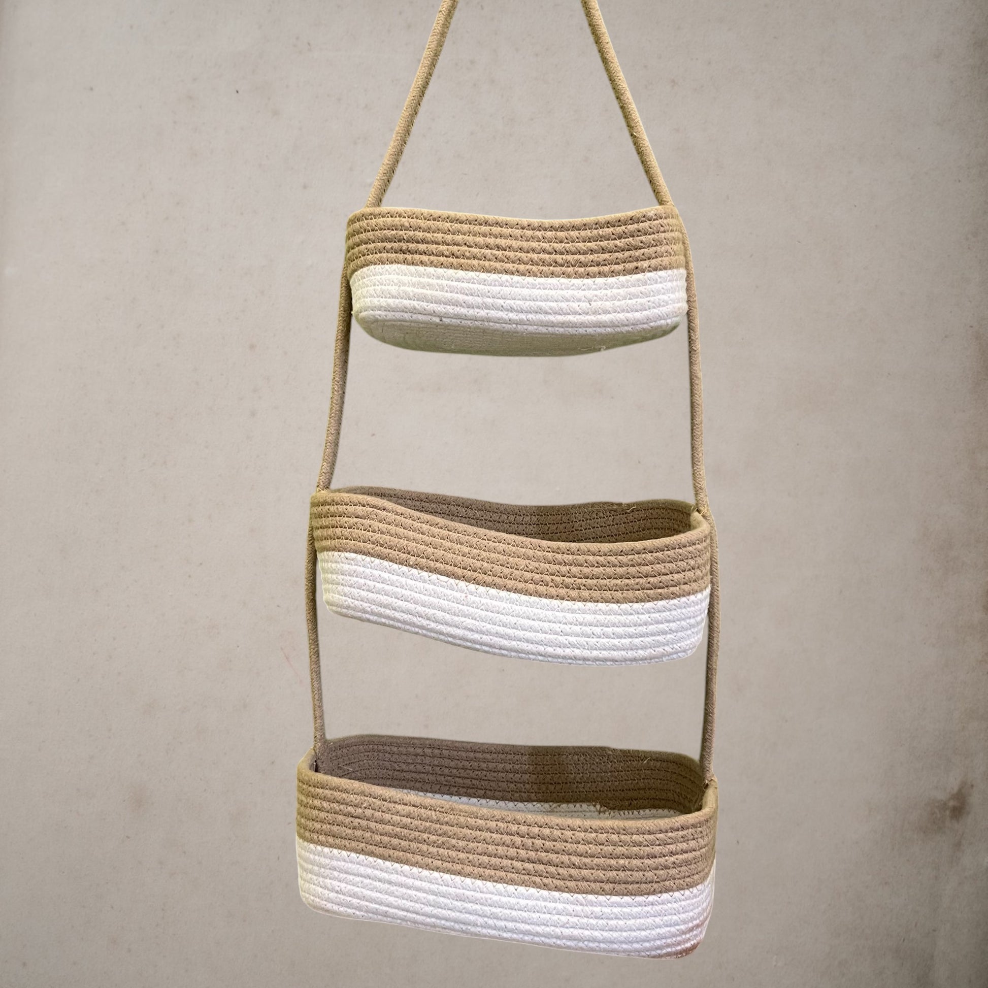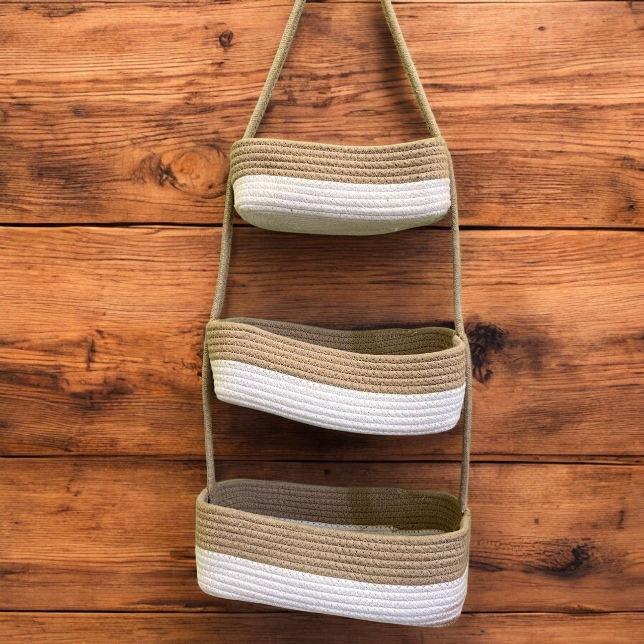 3-Tier Jute Wall Hanging Storage Basket organizer - Beige White