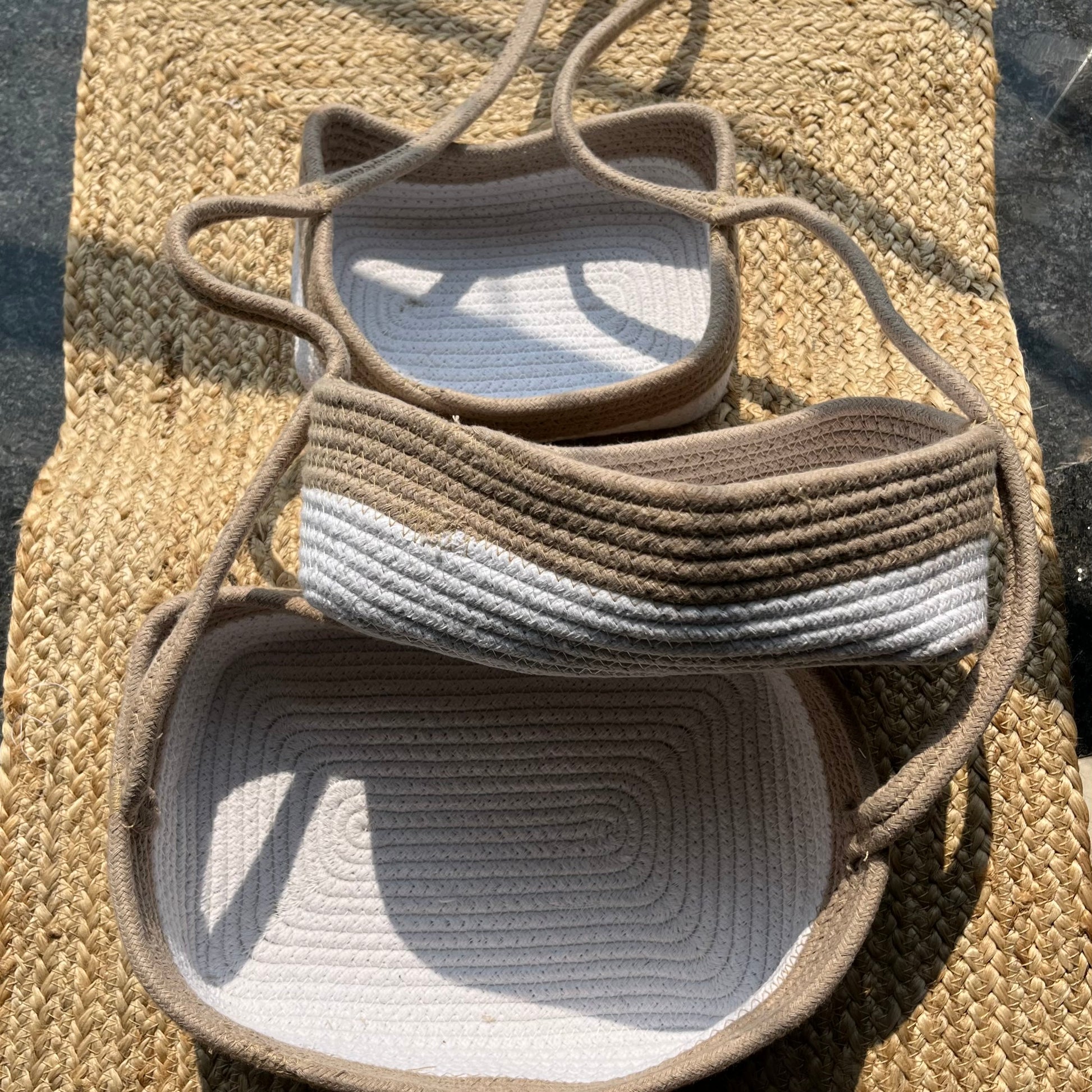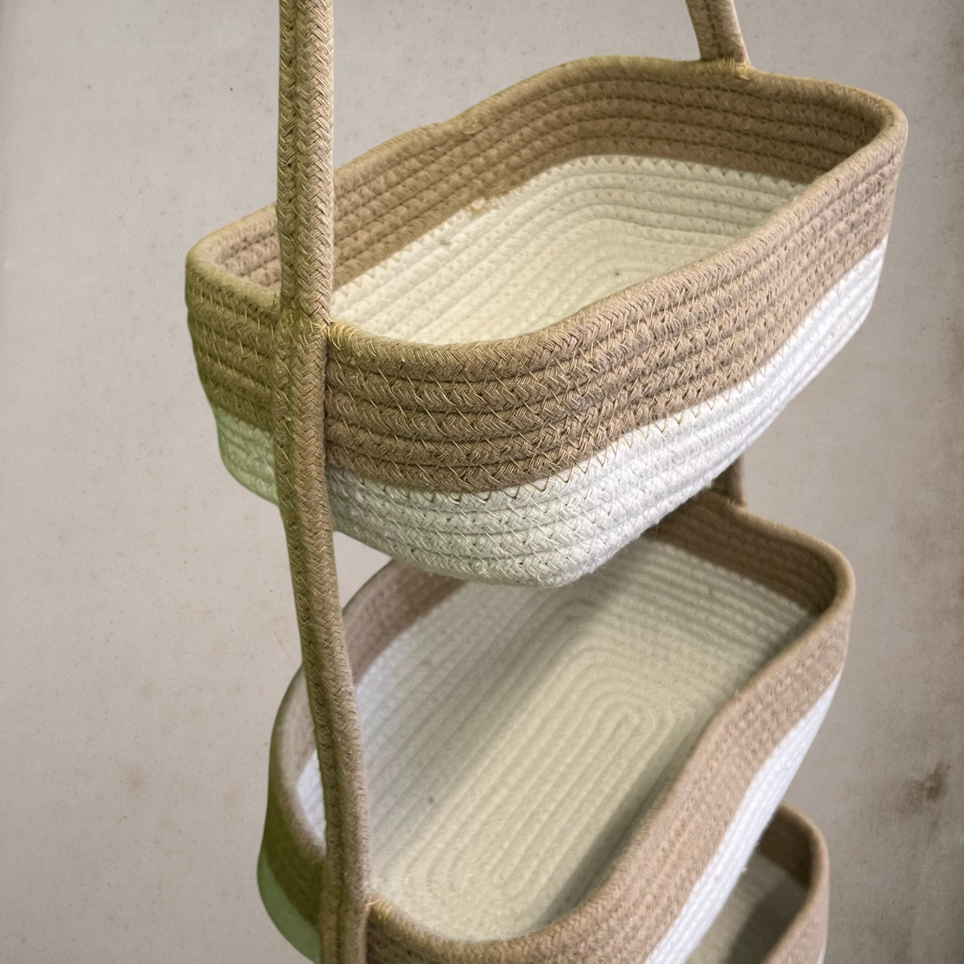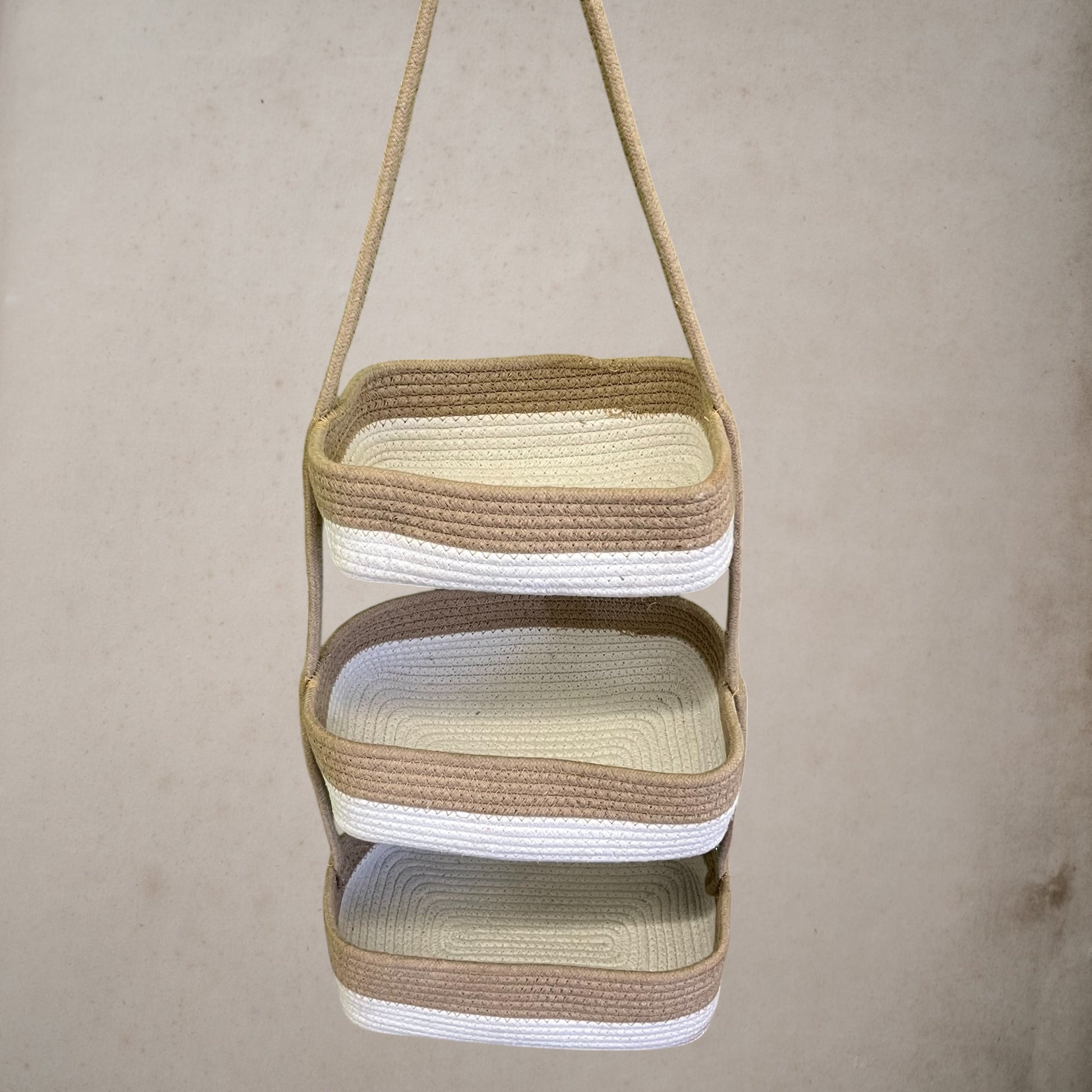 3-Tier Jute Wall Hanging Storage Basket organizer - Beige White