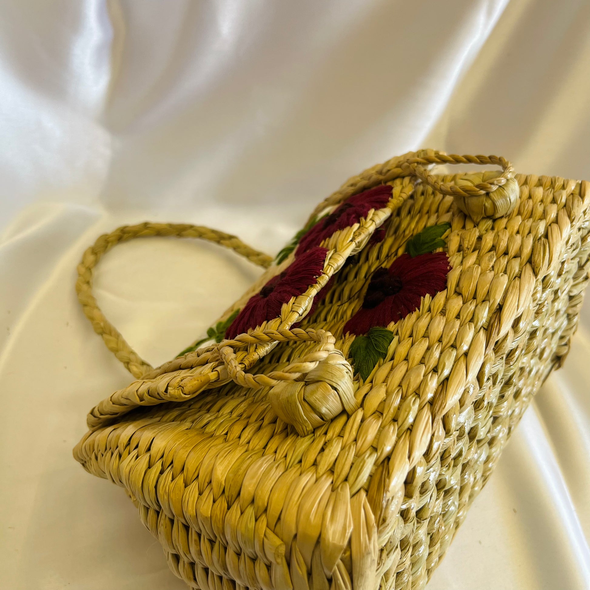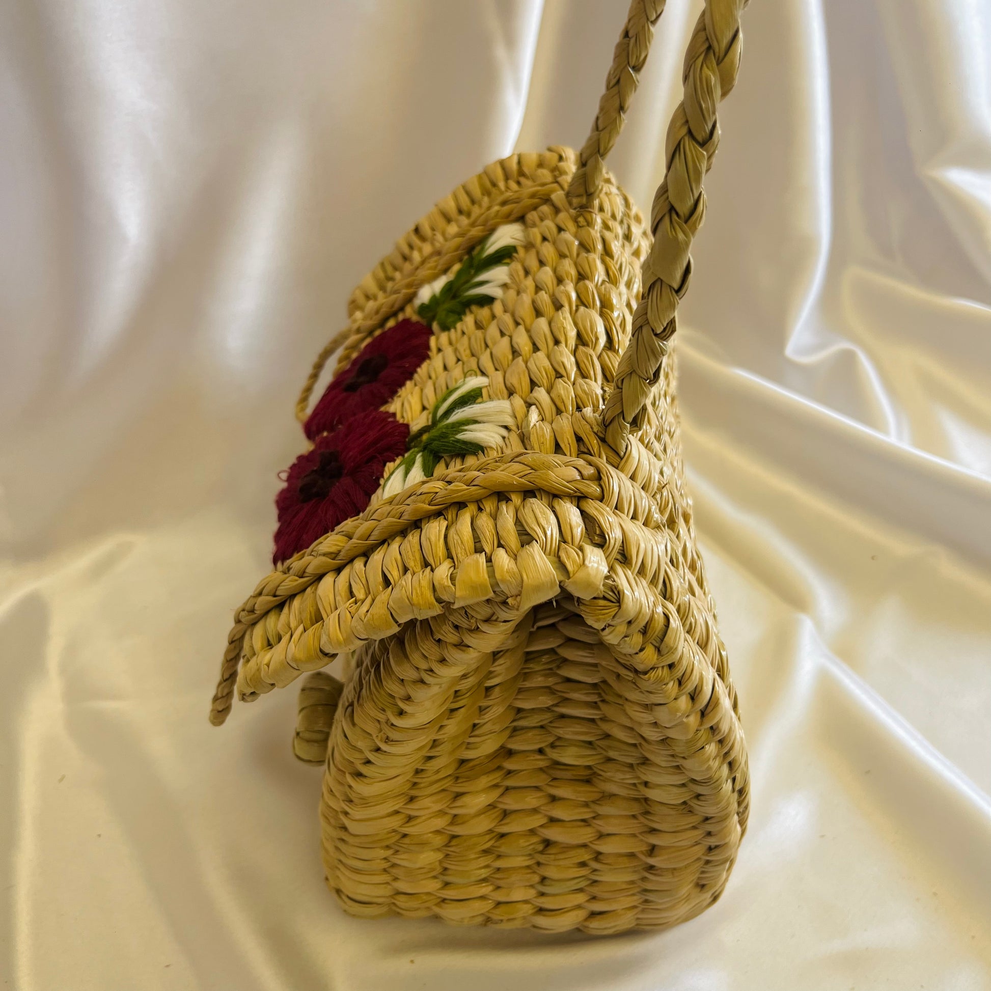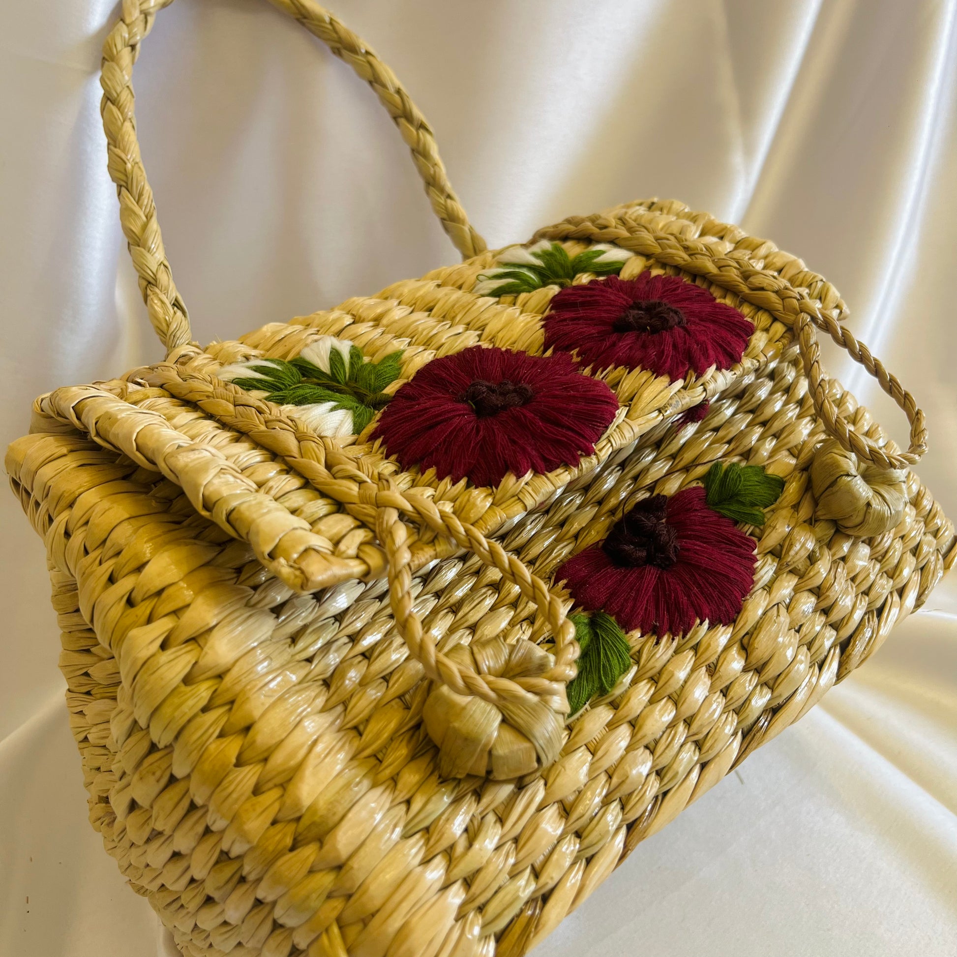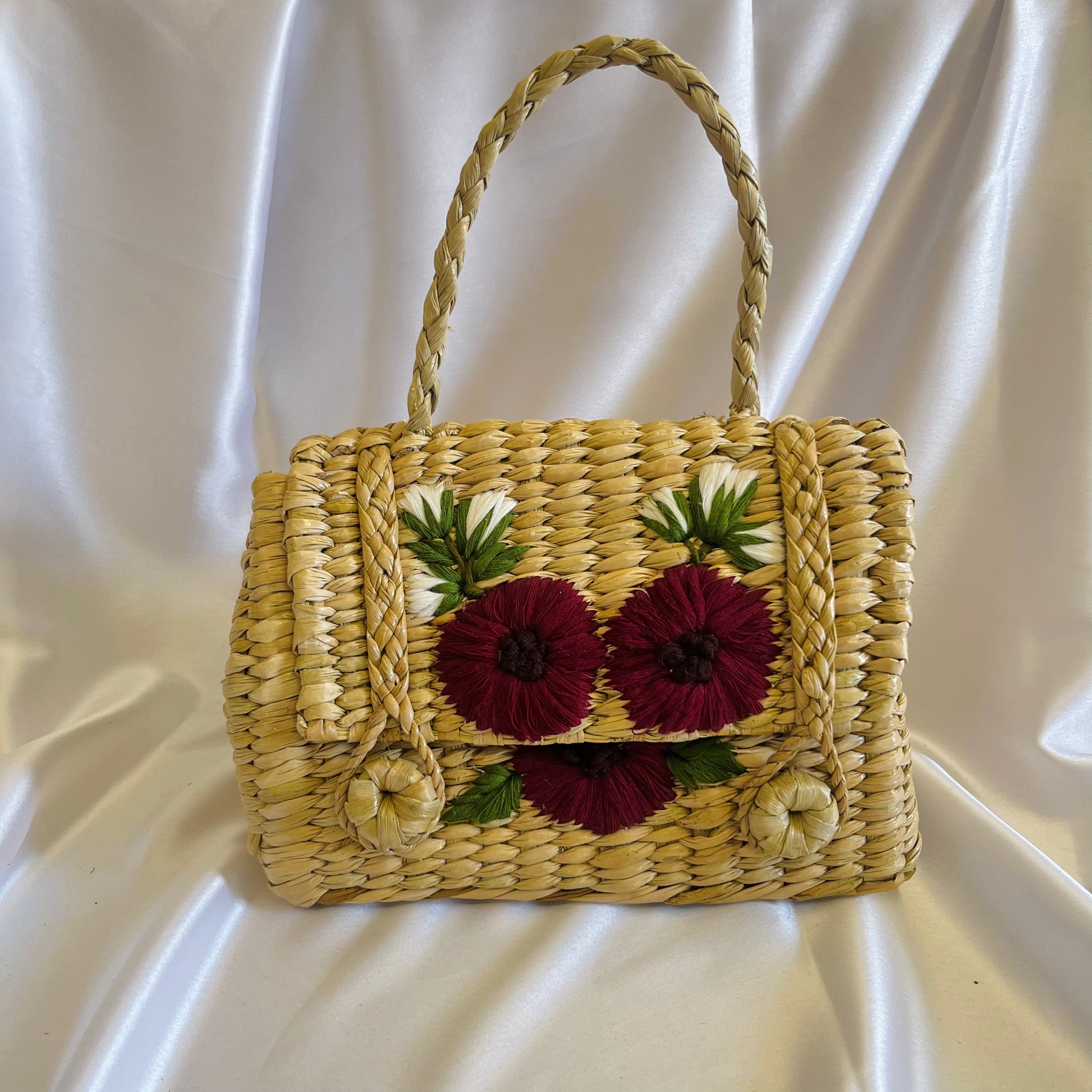 Kauna Grass Handbag with Hand-Embroidered Handle & Sabai Grass Button πΏβ¨