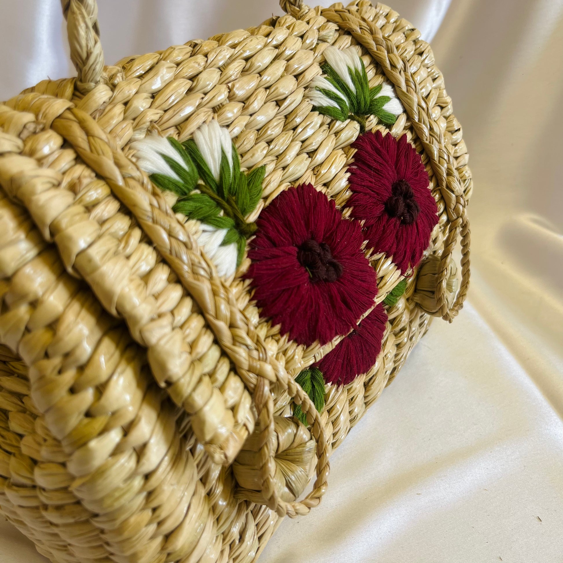 Red Marigold Kauna Grass Embroidery Handcrafted Handbag