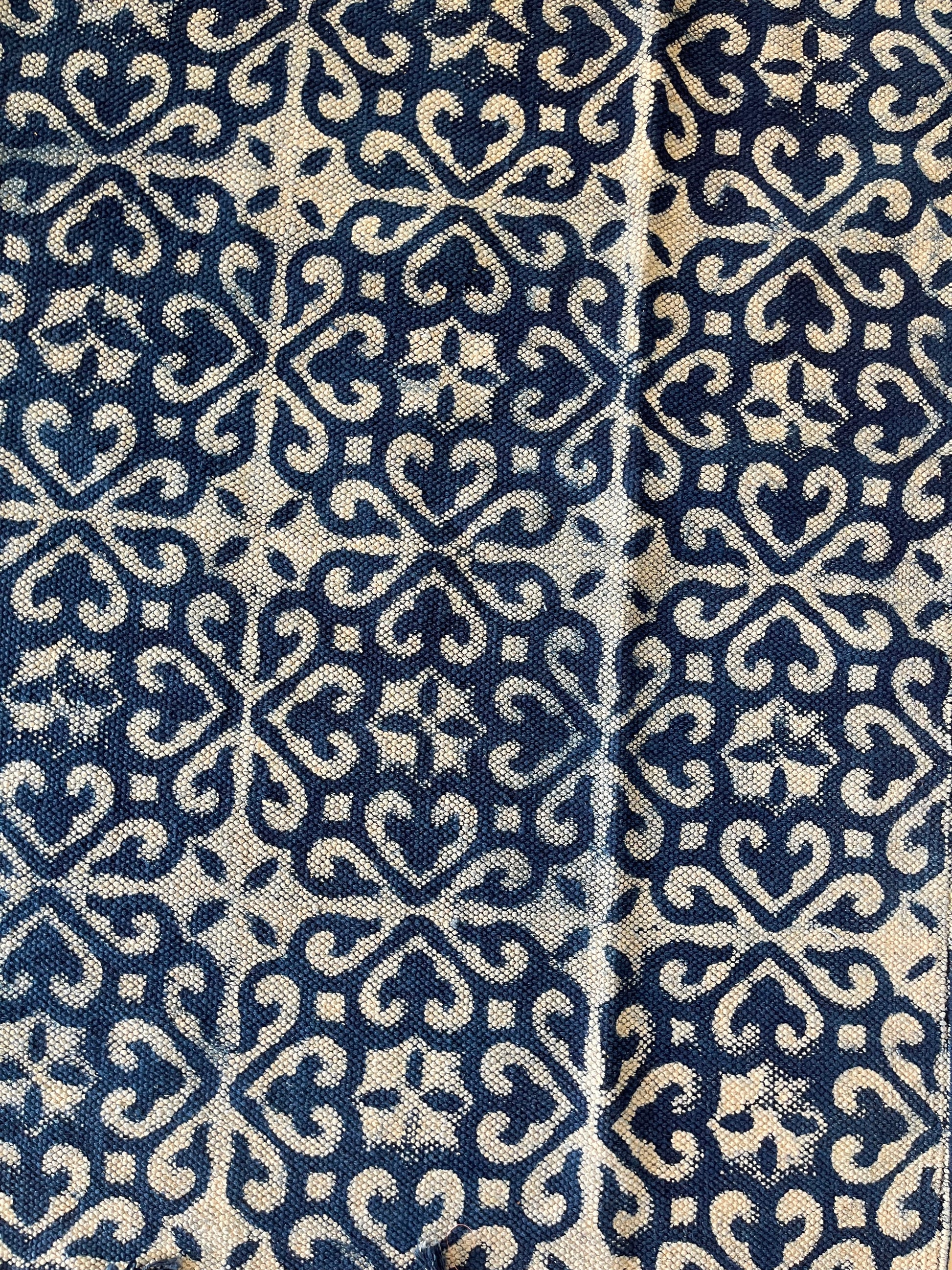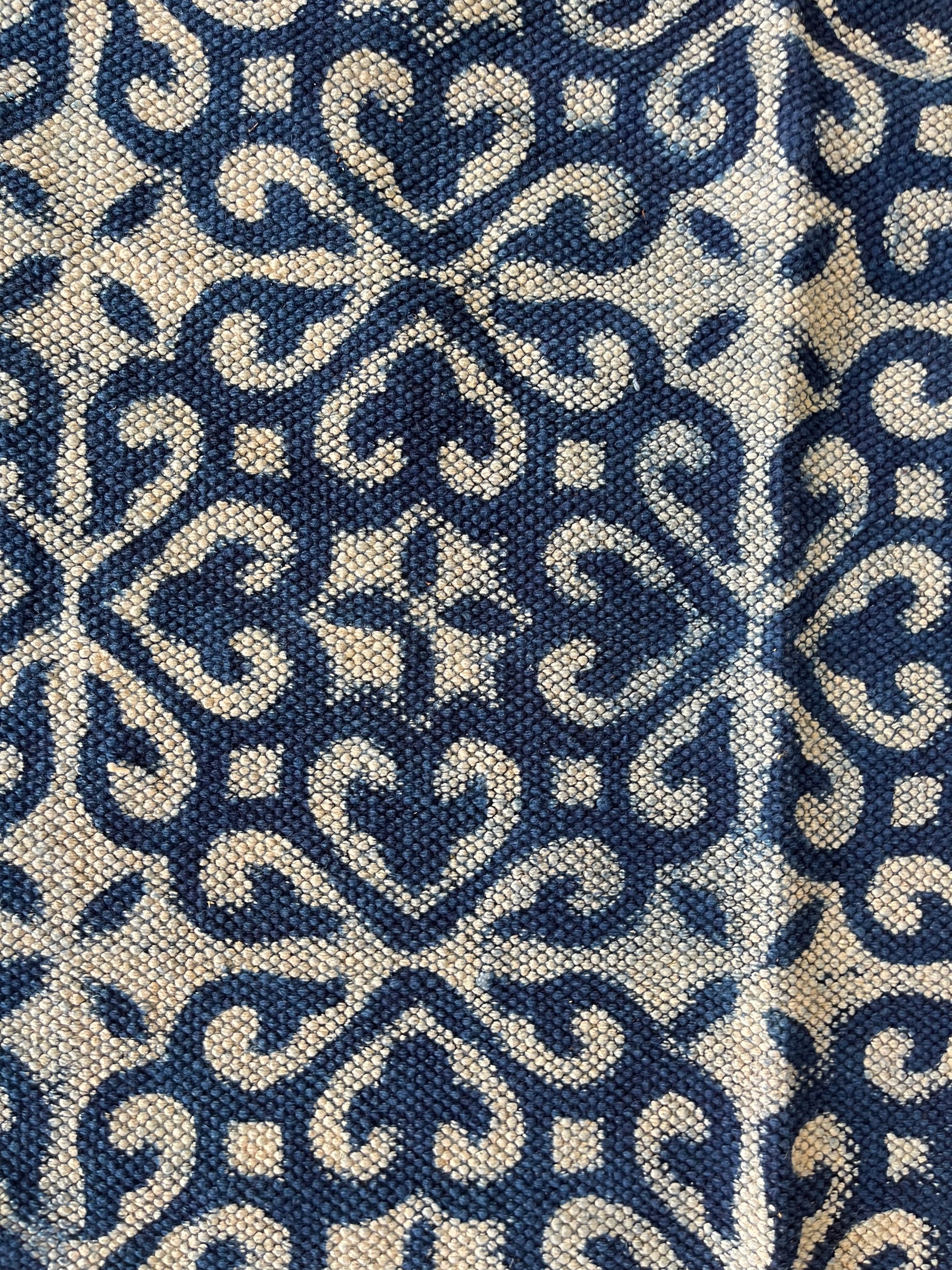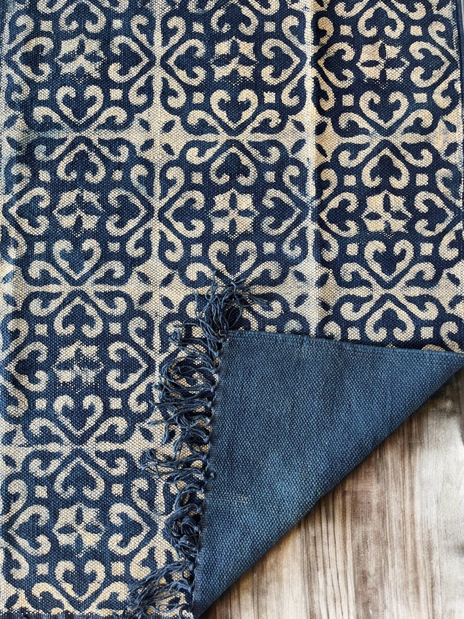 Abstract Pattern Handblock Print Blue Cotton Rug