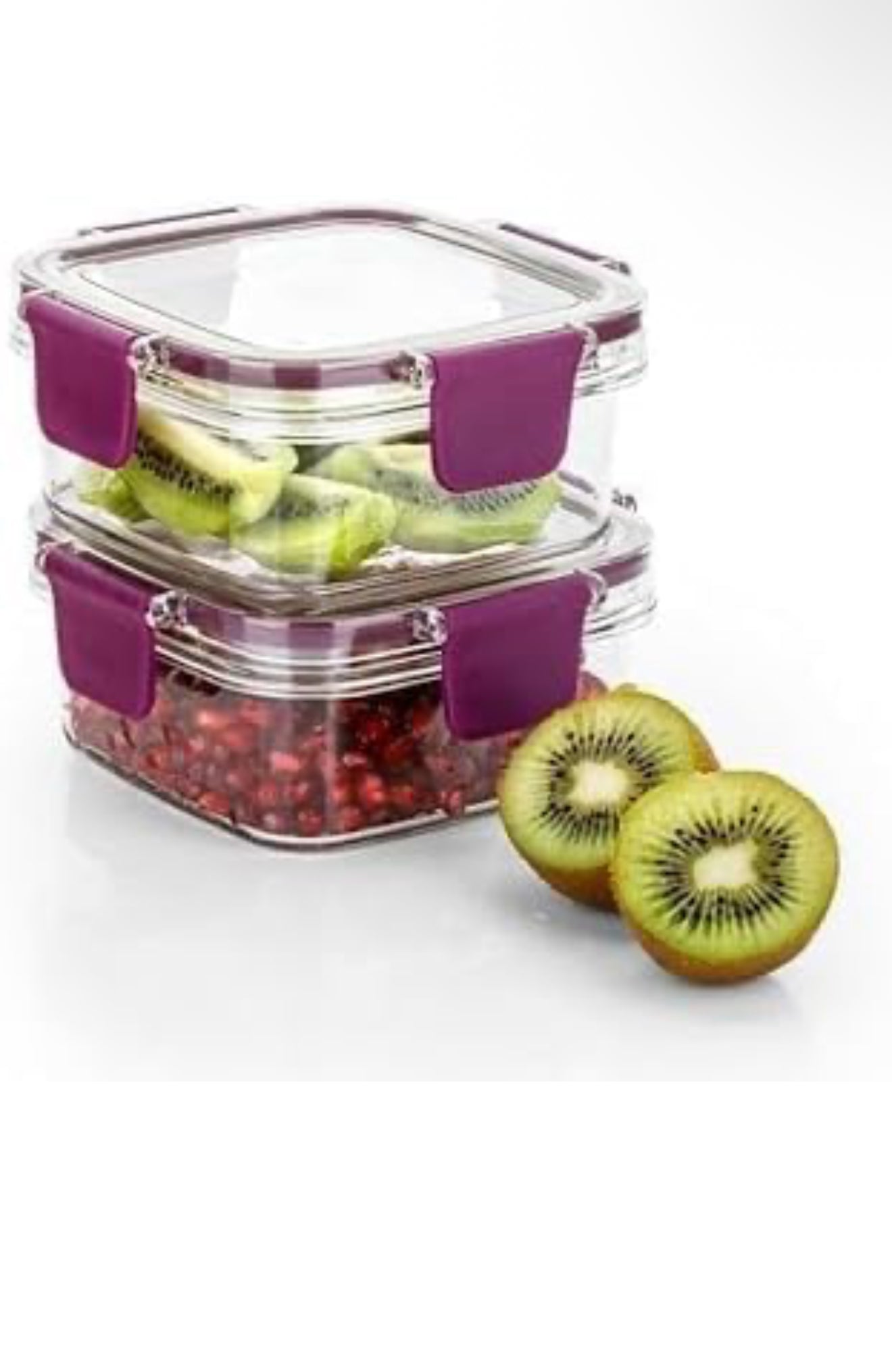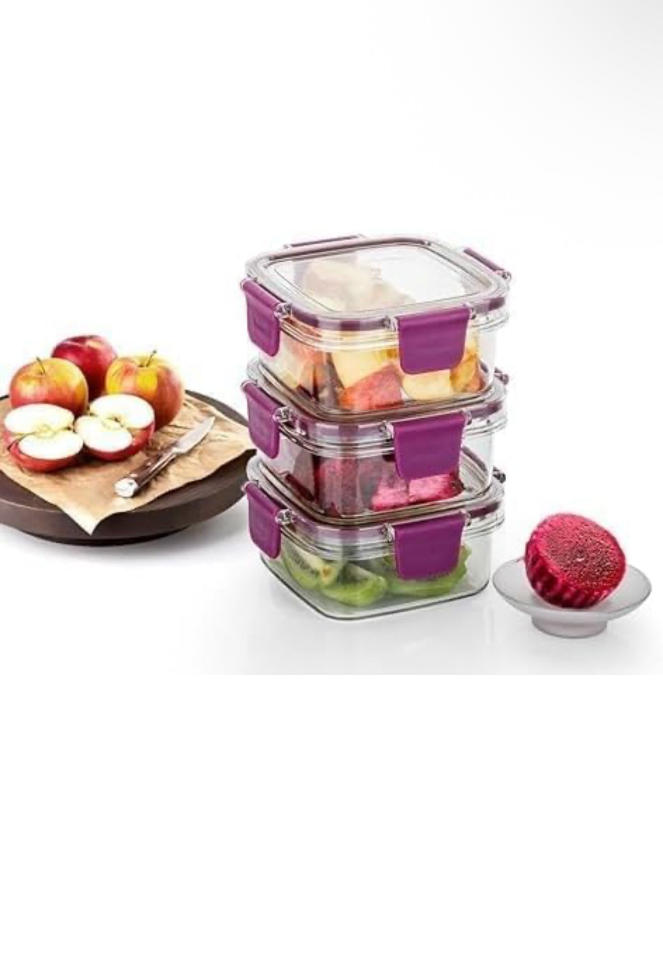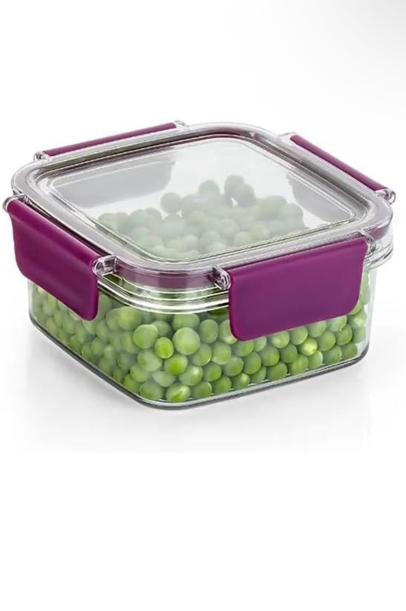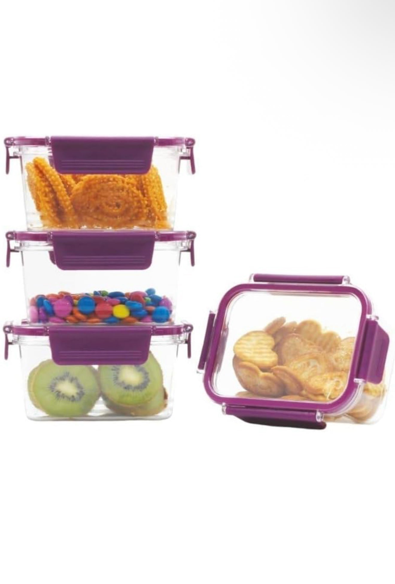 Airtight Flat Storage Containers Set for Kitchen – BPA-Free, Freezer Safe, 450 ml, Purple (Pack of 4) for Pantry Organization