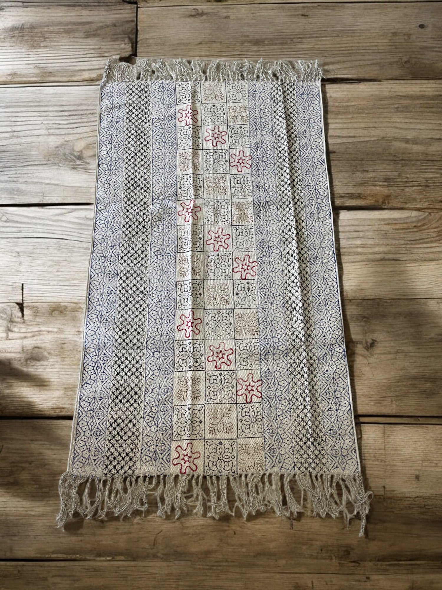 Add timeless elegance to your home with this Beige Cotton Rug with Multicolor Handblock Print, sized 3x5 ft. Crafted from 100% premium cotton, this rug features traditional handblock prints in vibrant multicolor patterns, blending cultural artistry with modern design. Its soft texture and durable fabric make it perfect for living rooms, bedrooms, hallways, or entryways. Made with eco-friendly dyes, it ensures safety and sustainability. Designed for both style and comfort, this versatile cotton rug transforms any space with warmth and charm. Dry clean only for long-lasting beauty. Shop now to enhance your home decor with a handcrafted touch!