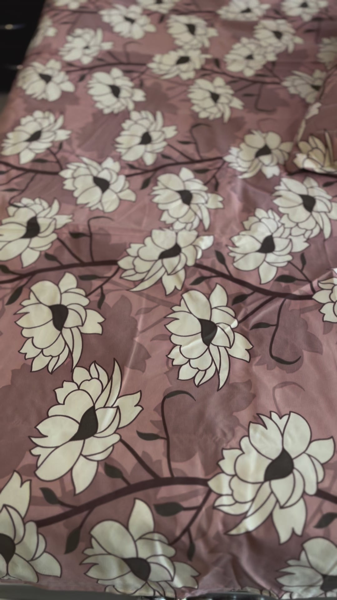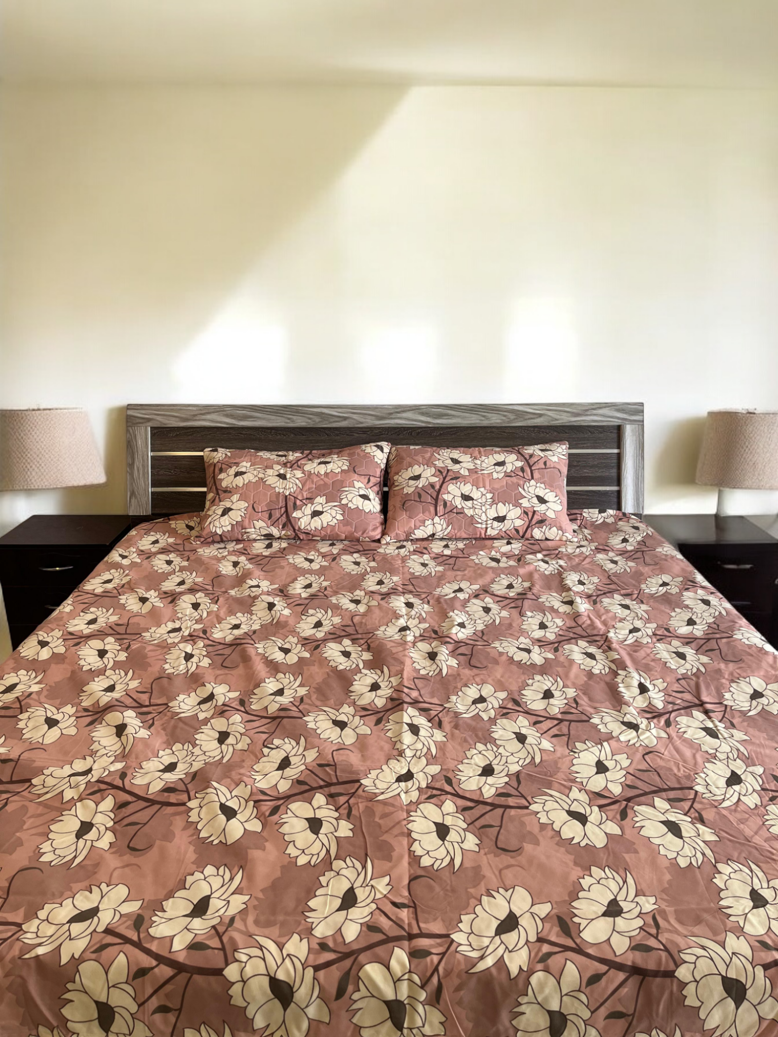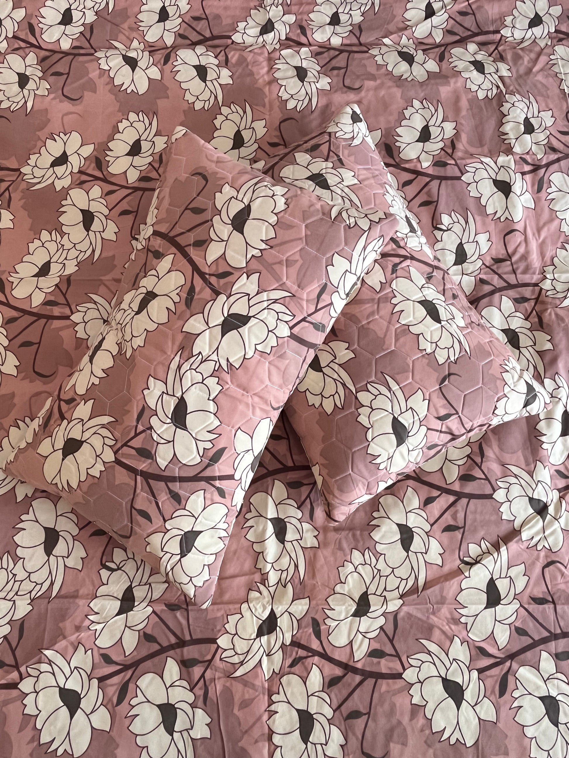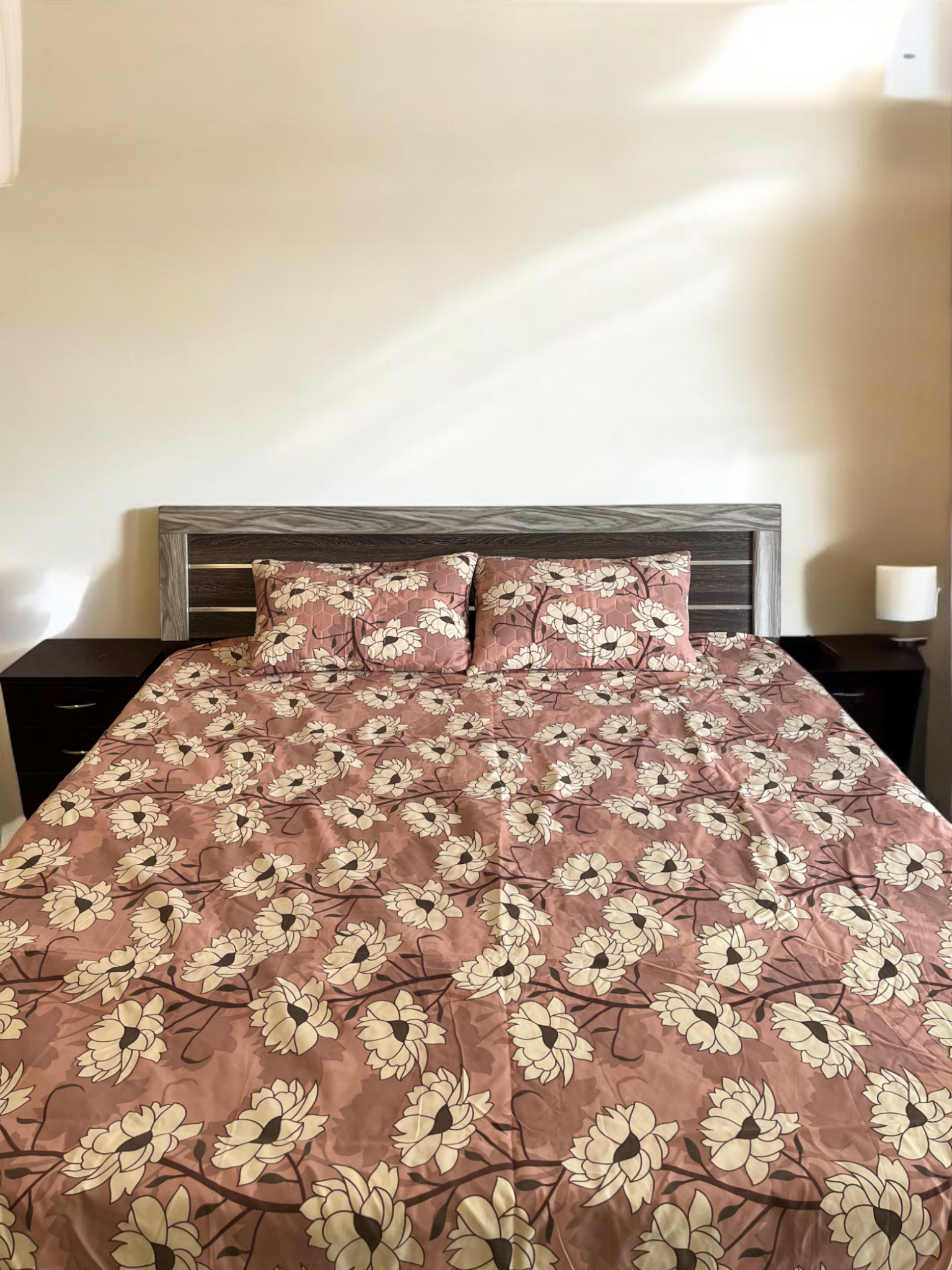 Beige Flower Double Bedsheet with 2 Quilted Pillows Covers