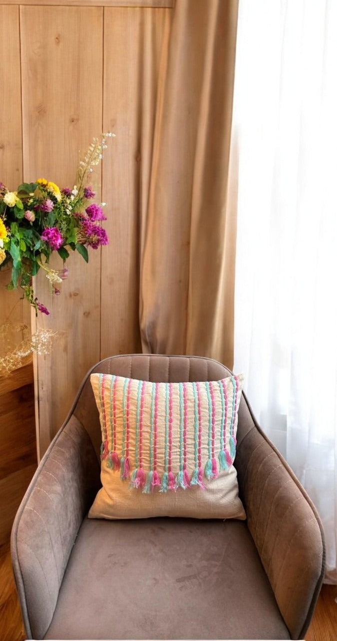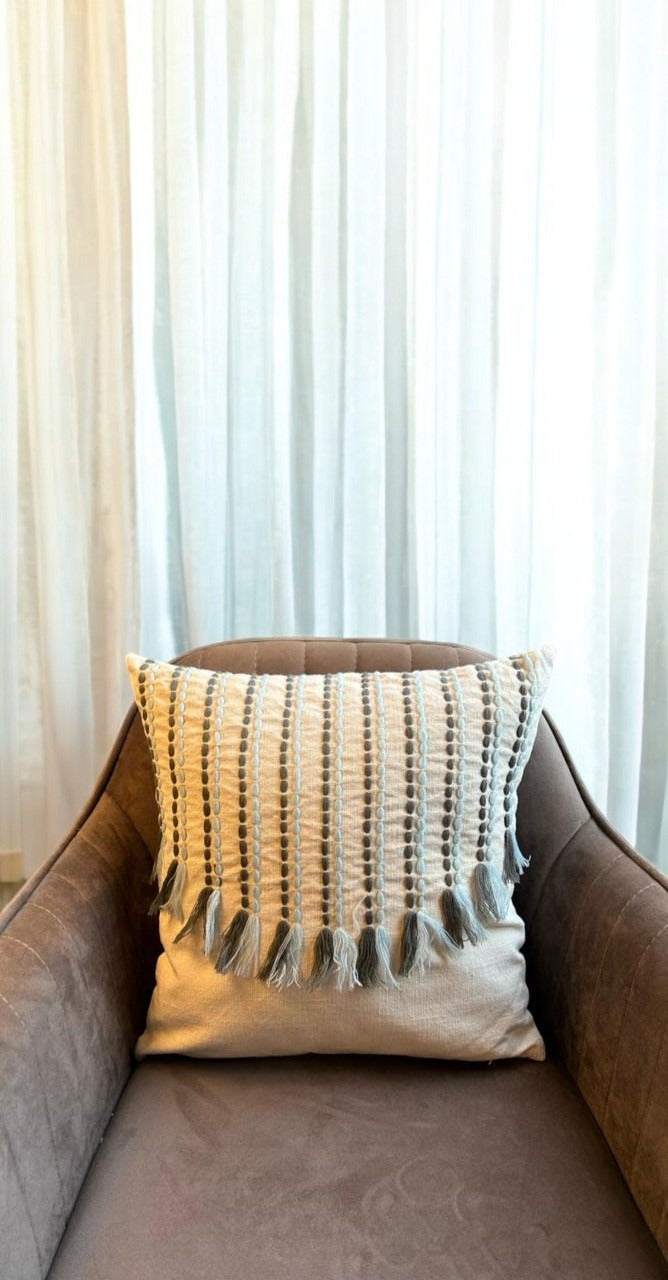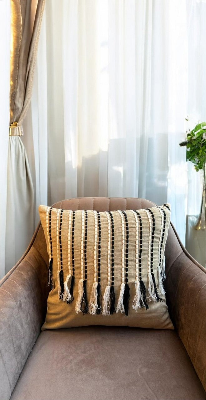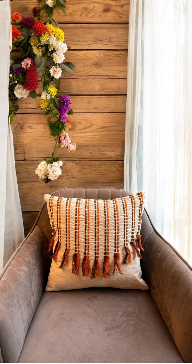 Embrace the comforts of a Beige Jute Based Frill Cushion Cover that is full of cosines and rustic appeal. This jute fabric cushion reversible cover is perfect for home decorating because it brings natural beauty. The frill detailing also adds a cute and attractive touch which makes this cushion cover a complete necessity in any living room.