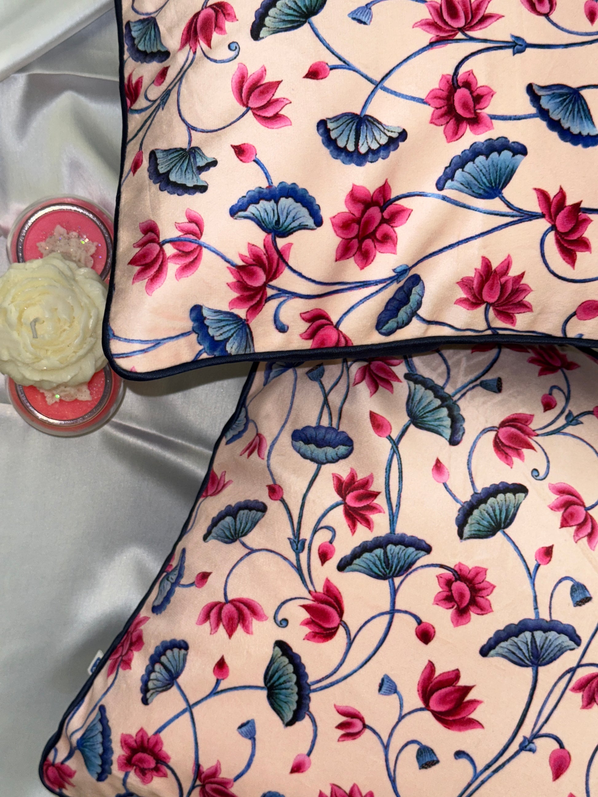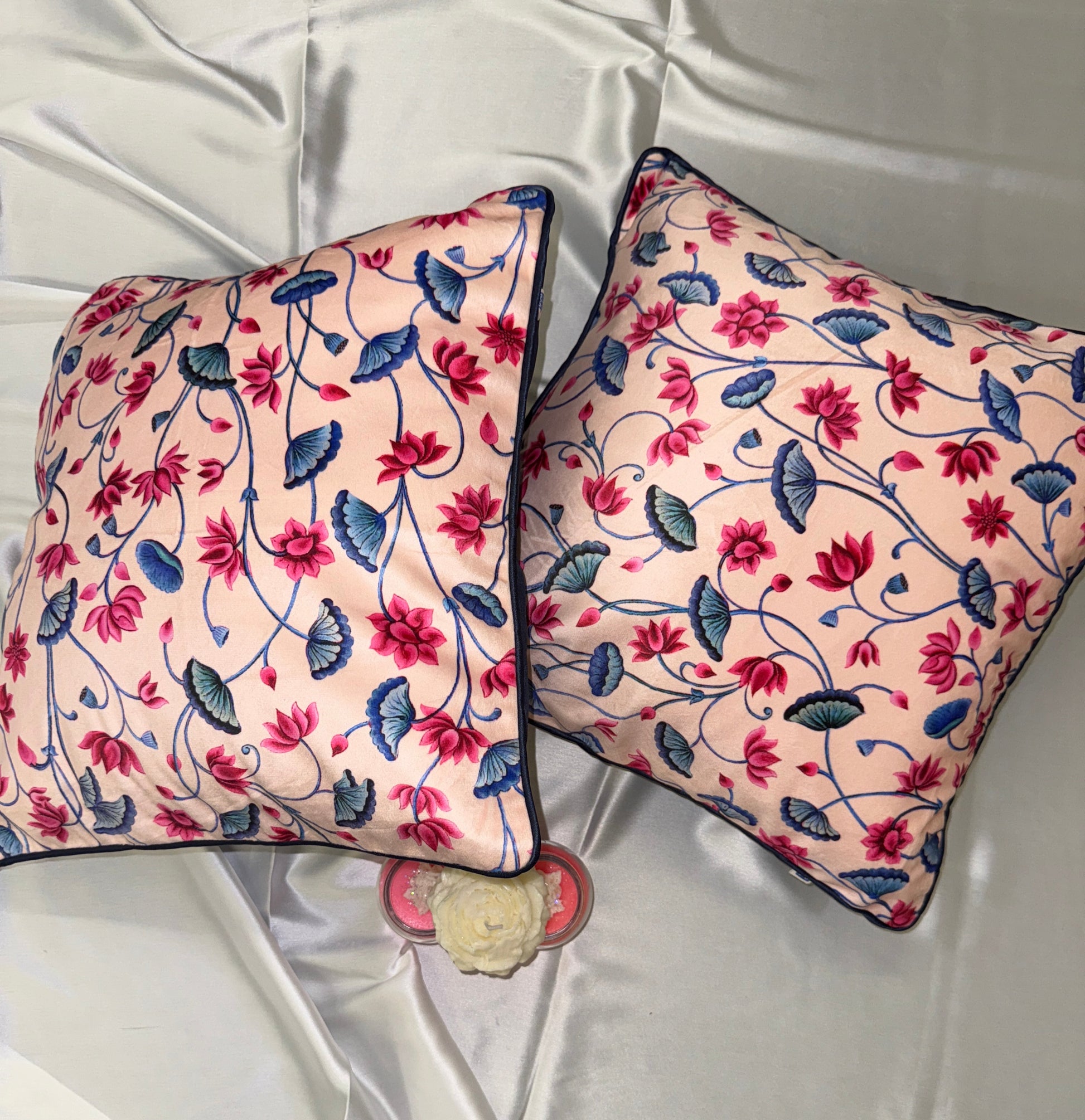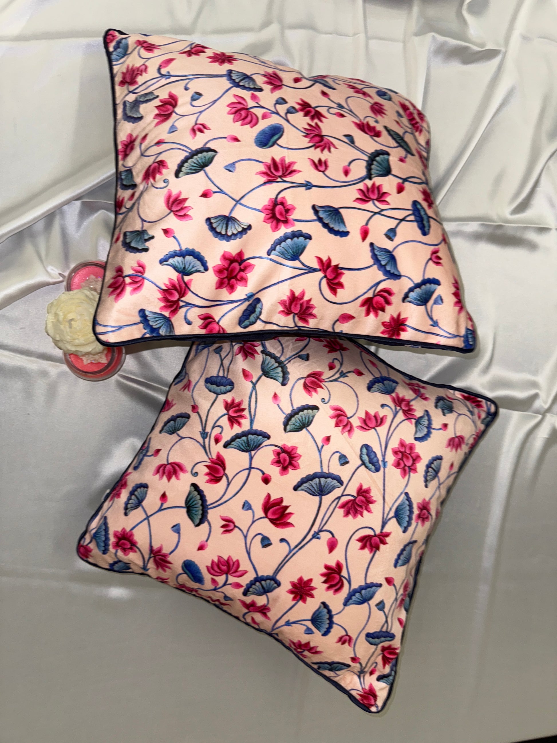 Add a sophisticated touch to your home décor with the Beige Velvet Cushion Cover with Blue and Pink Design. Crafted from premium velvet fabric, this cushion cover features an intricate blue and pink pattern that beautifully contrasts with the soft beige base, creating a timeless and elegant look.