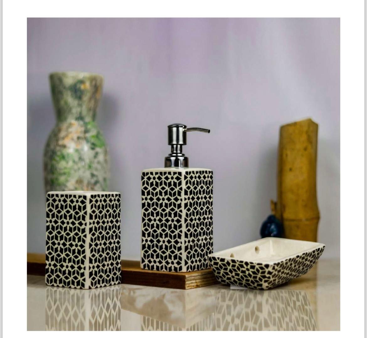 - 3-Piece Ceramic Set – Includes a soap dispenser, soap bar holder, and toothbrush holder.