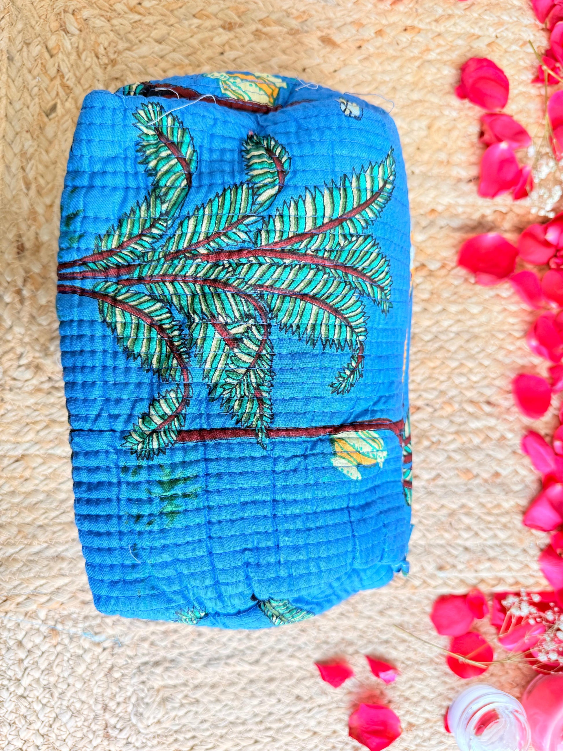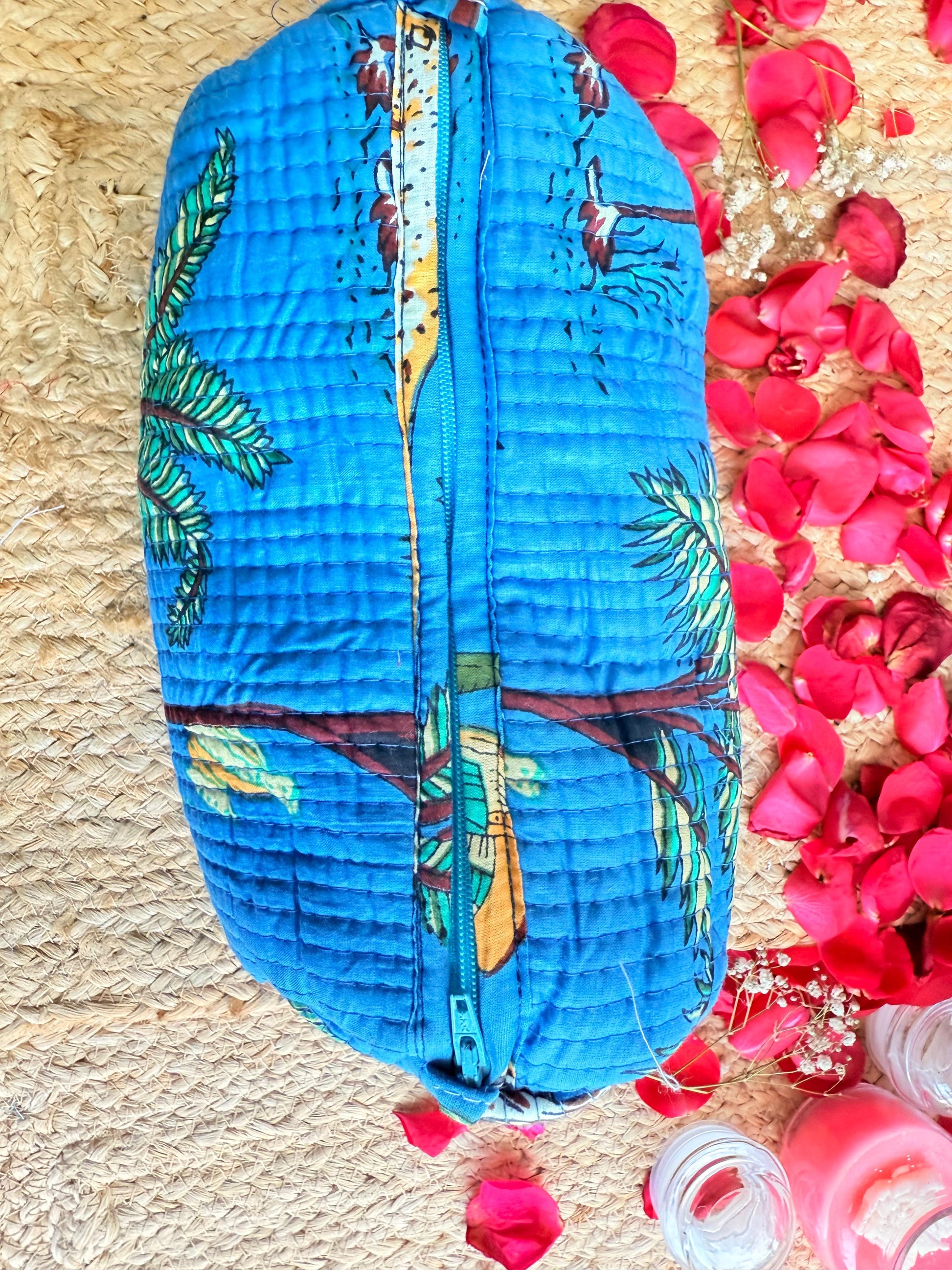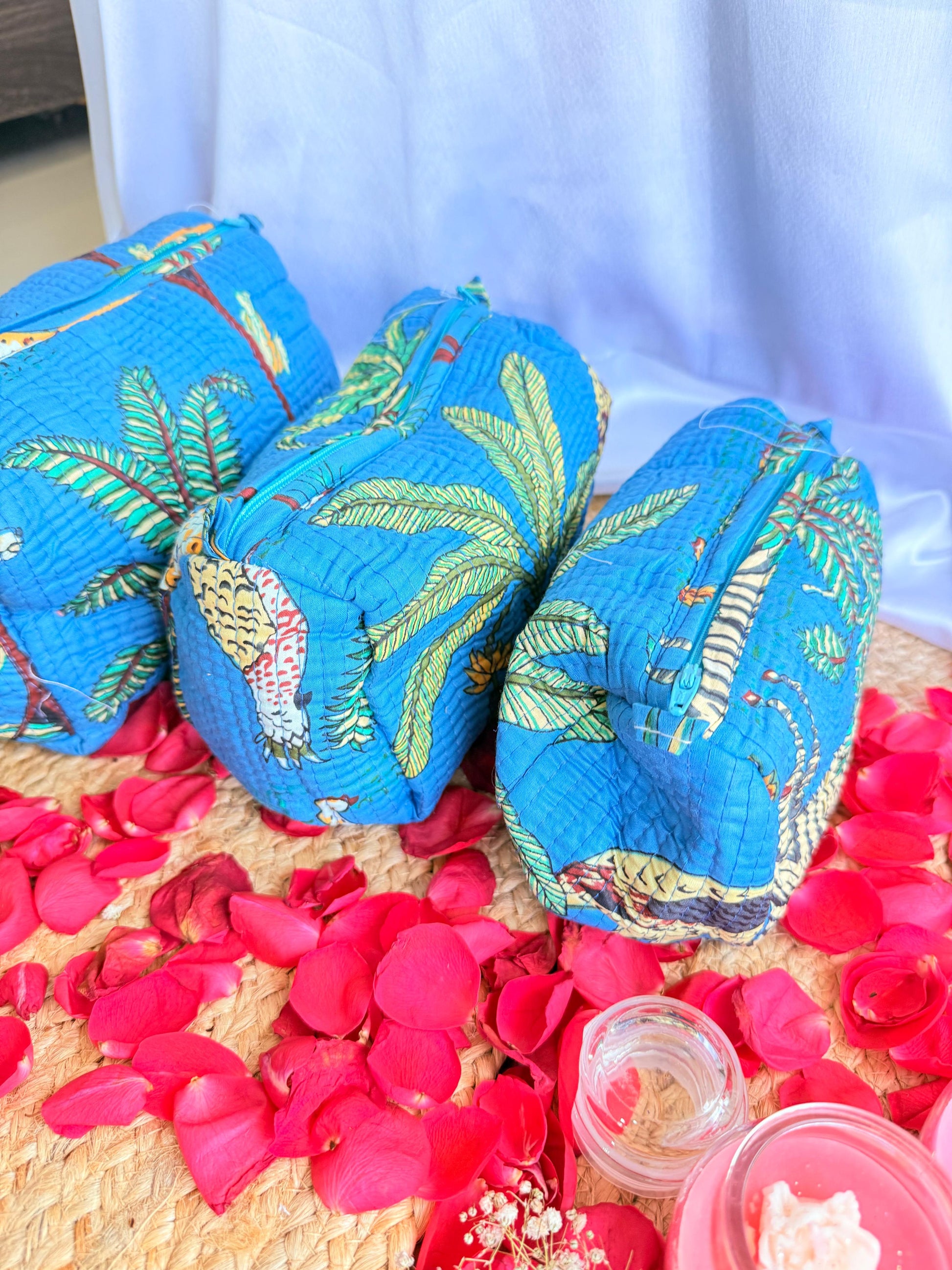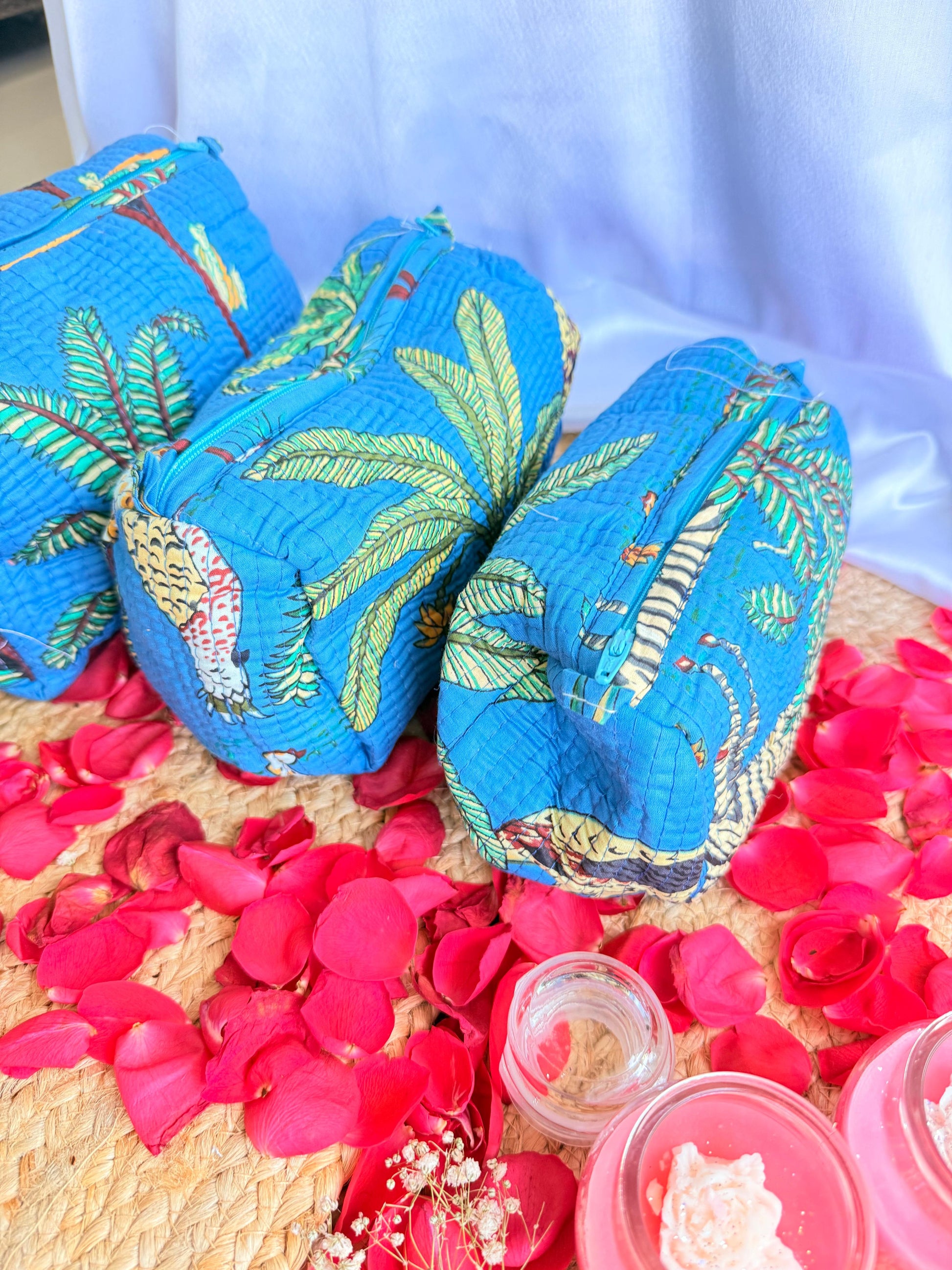 Dark Blue Floral Handblock Travel Pouch Organizer Set of 3