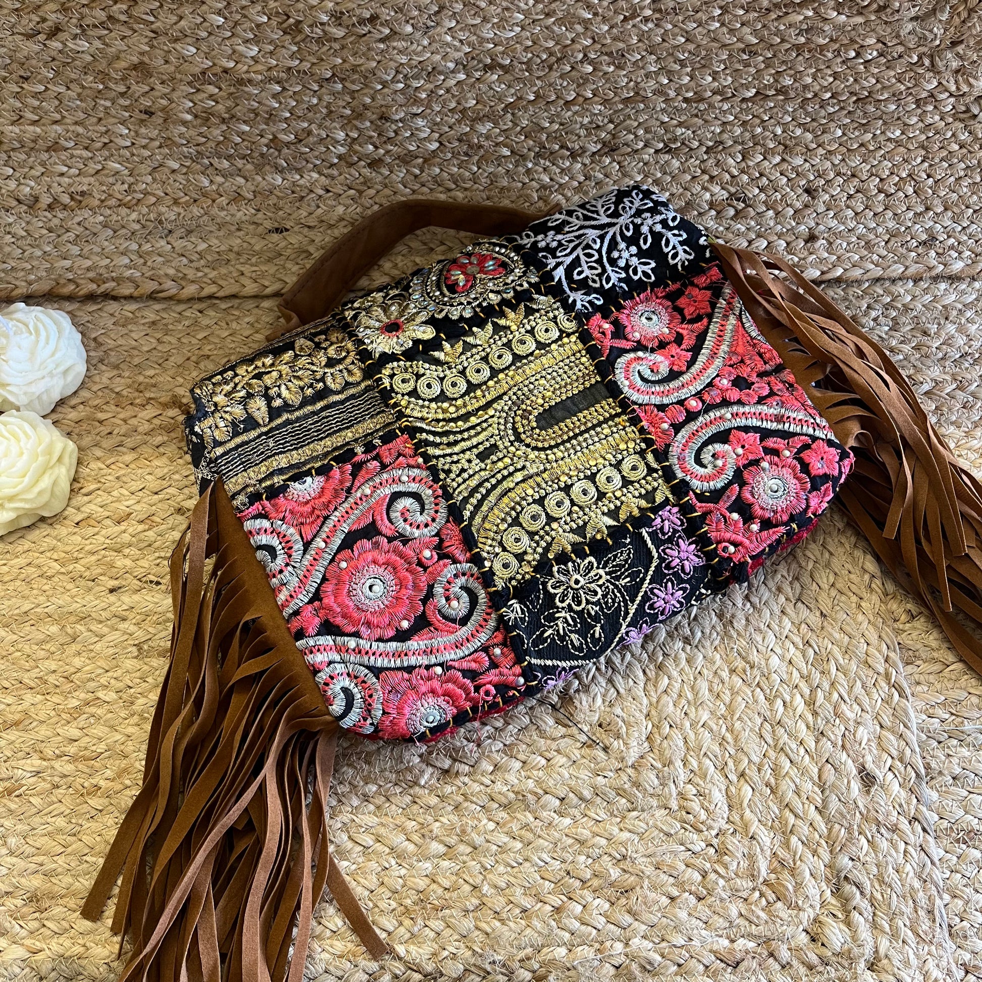Add a touch of bohemian elegance to your wardrobe with this beautifully crafted Tasseled Boho Sling Bag. Designed for the free-spirited and fashion-conscious, this bag blends style, comfort, and practicality, making it an ideal companion for everyday adventures. Whether you're heading out for a casual day, a festival, or a shopping spree, this bag complements any outfit effortlessly.