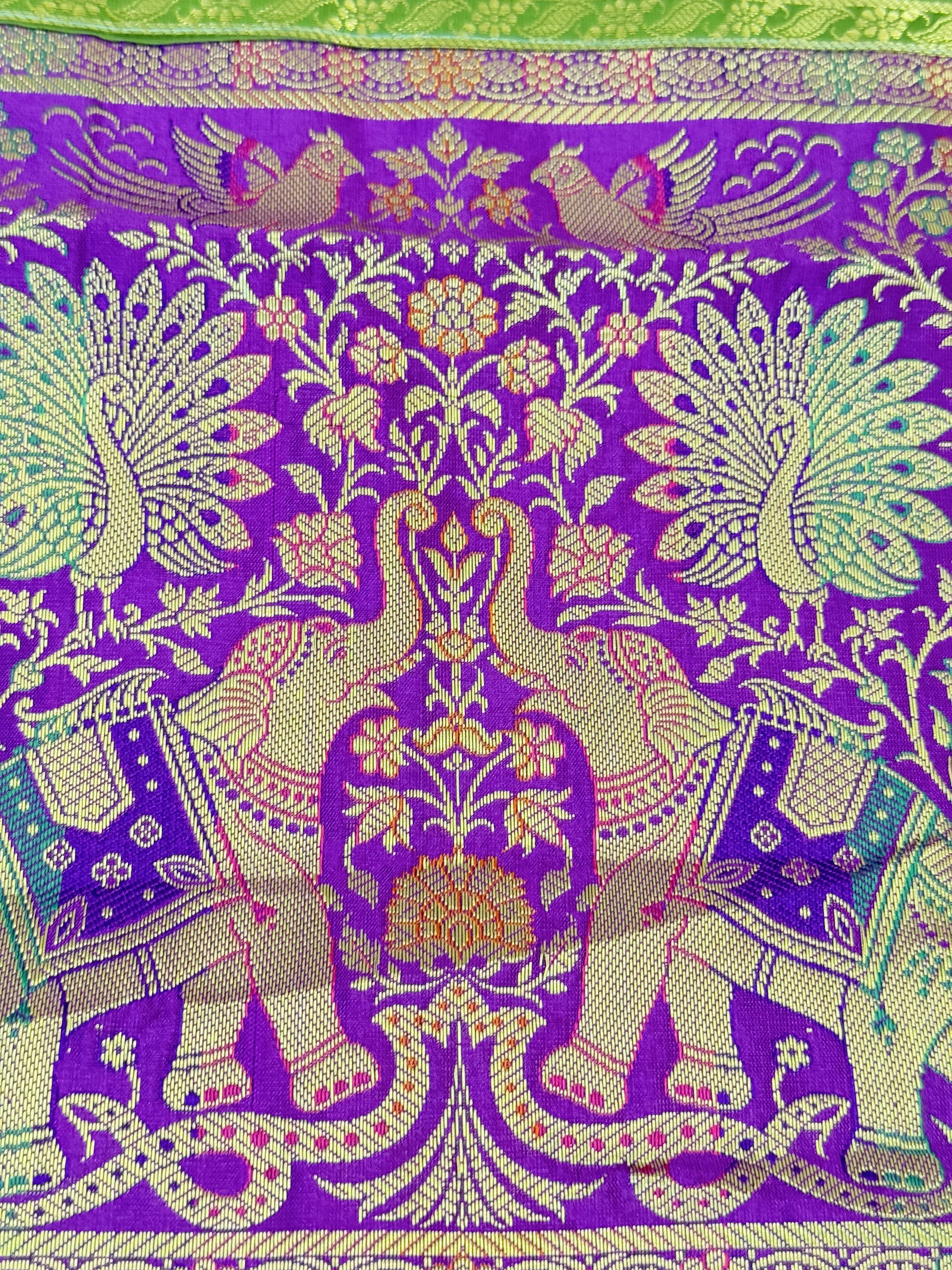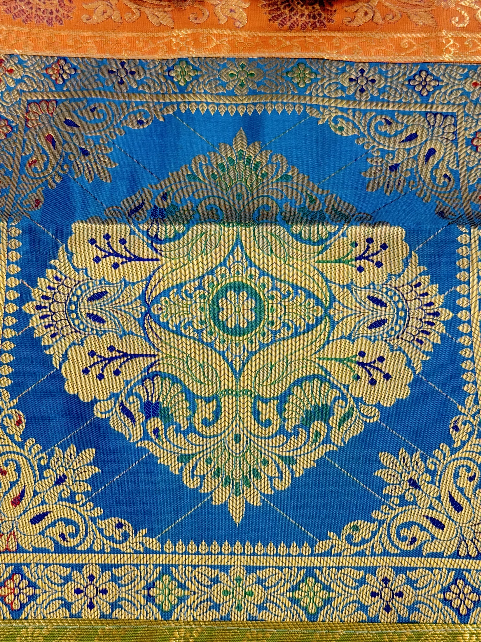 - Material: High-quality brocade and art silk for a luxurious sheen and durability