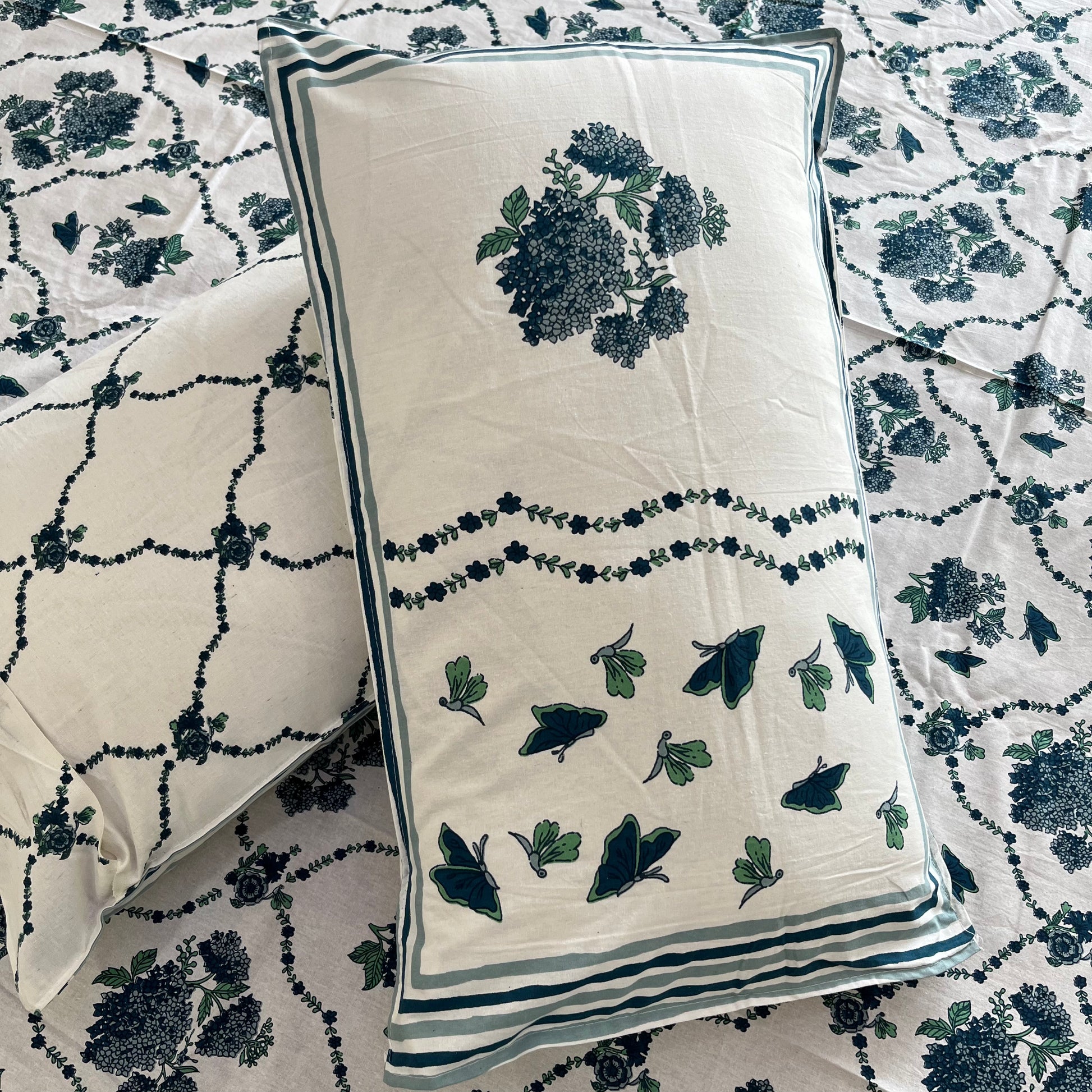 Handblock Print: Showcasing traditional Indian artistry with intricate butterfly and floral patterns