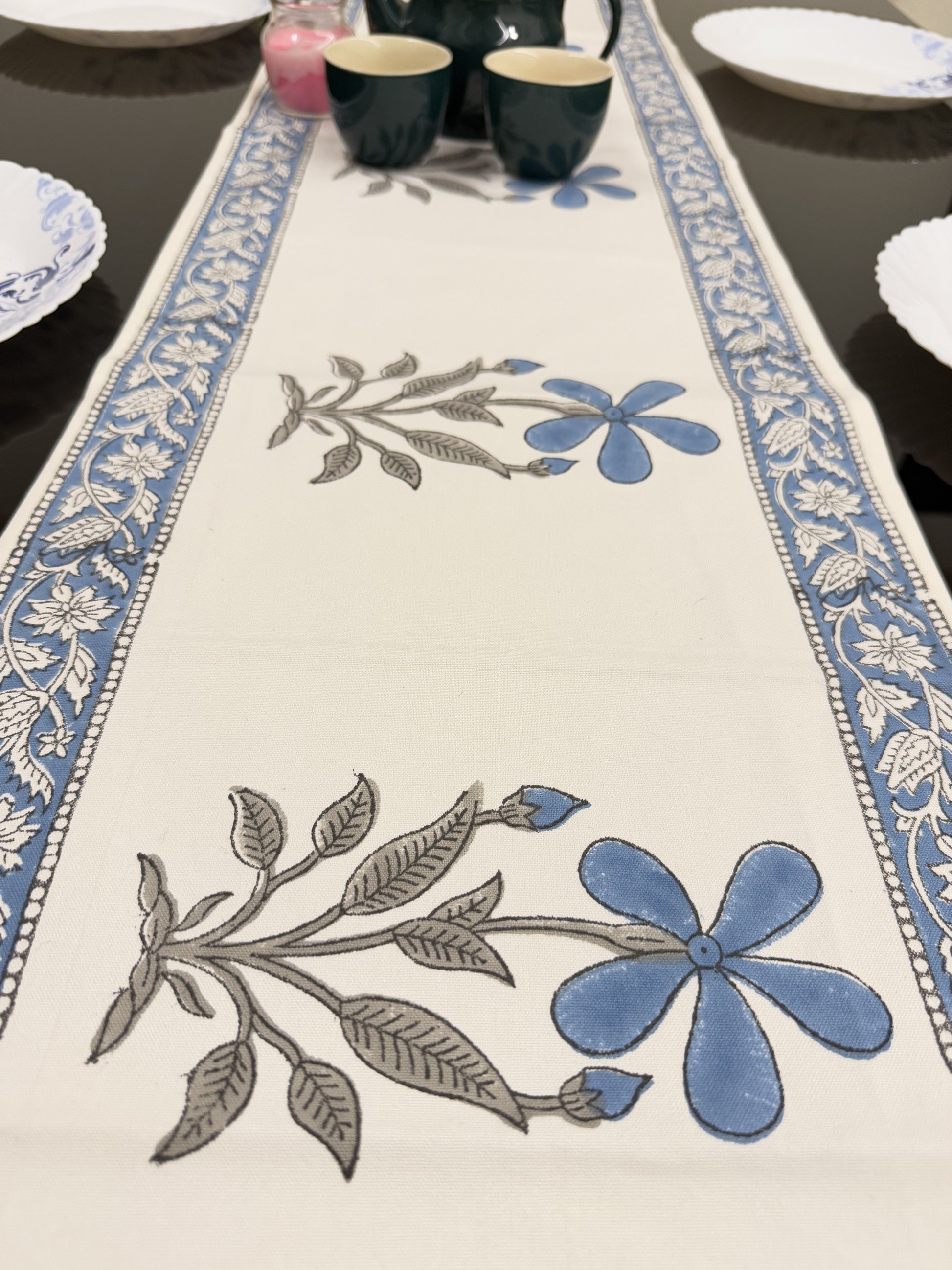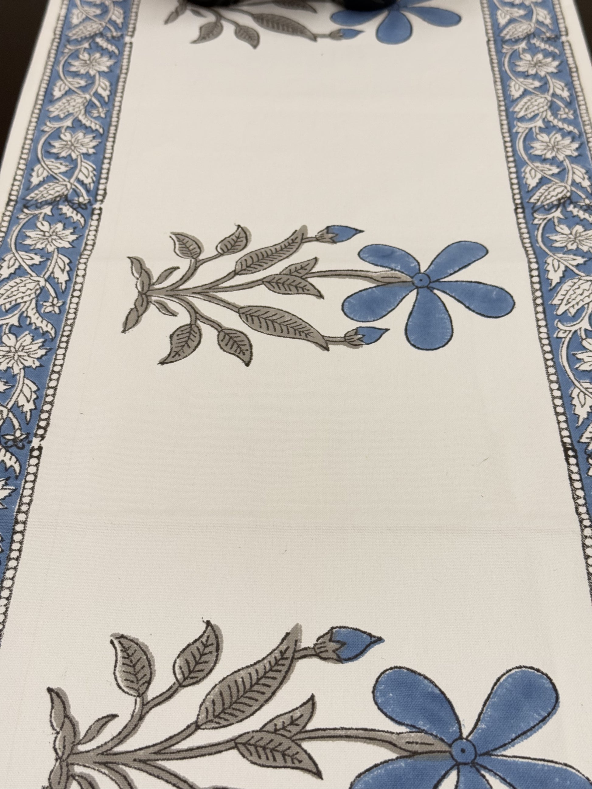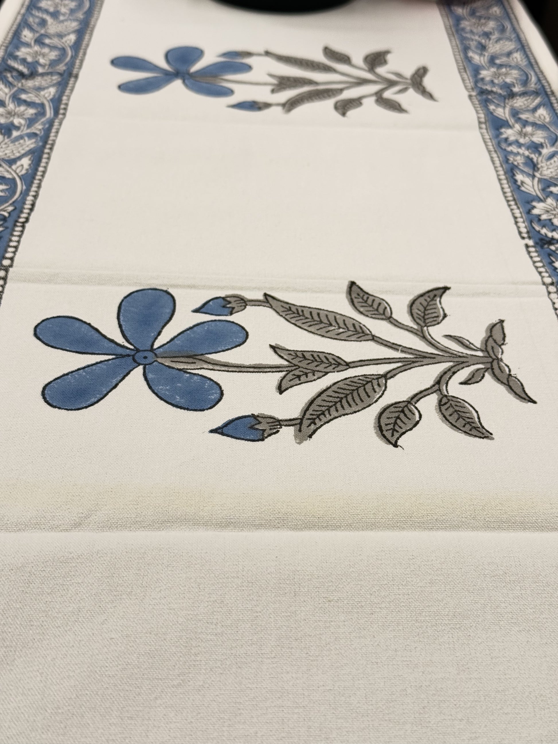 Blue Flower Pure Cotton Rajasthani Handblock Table Runner