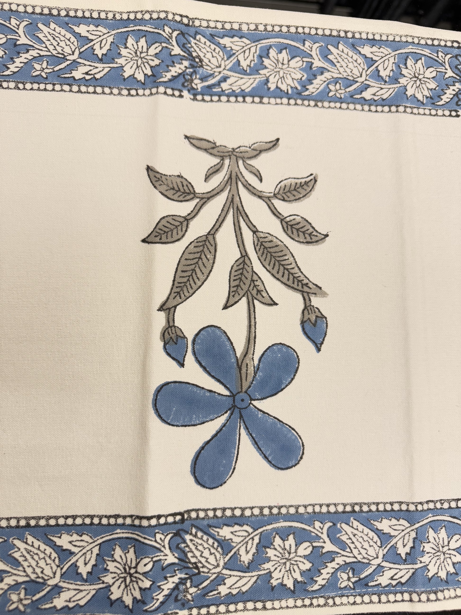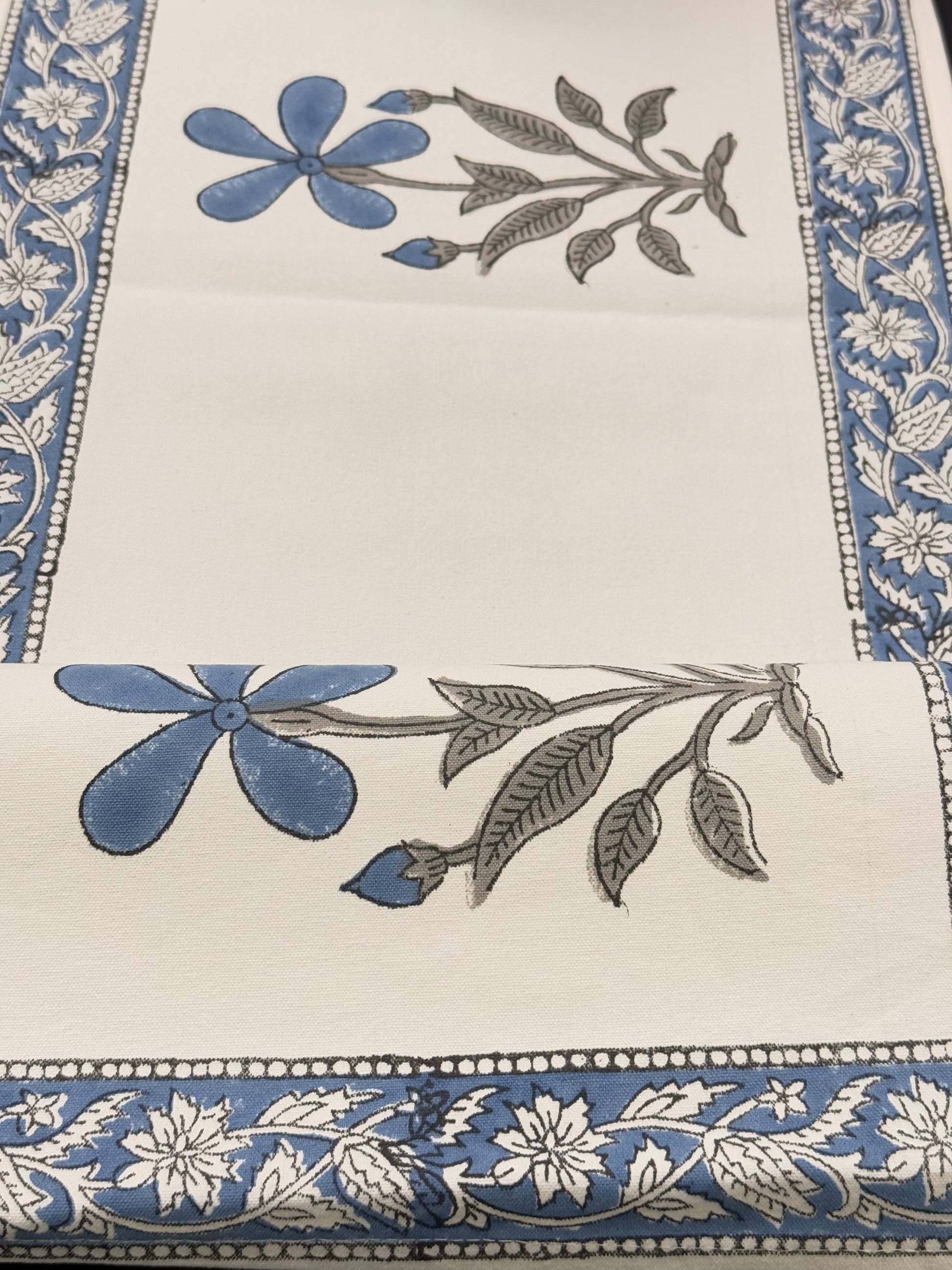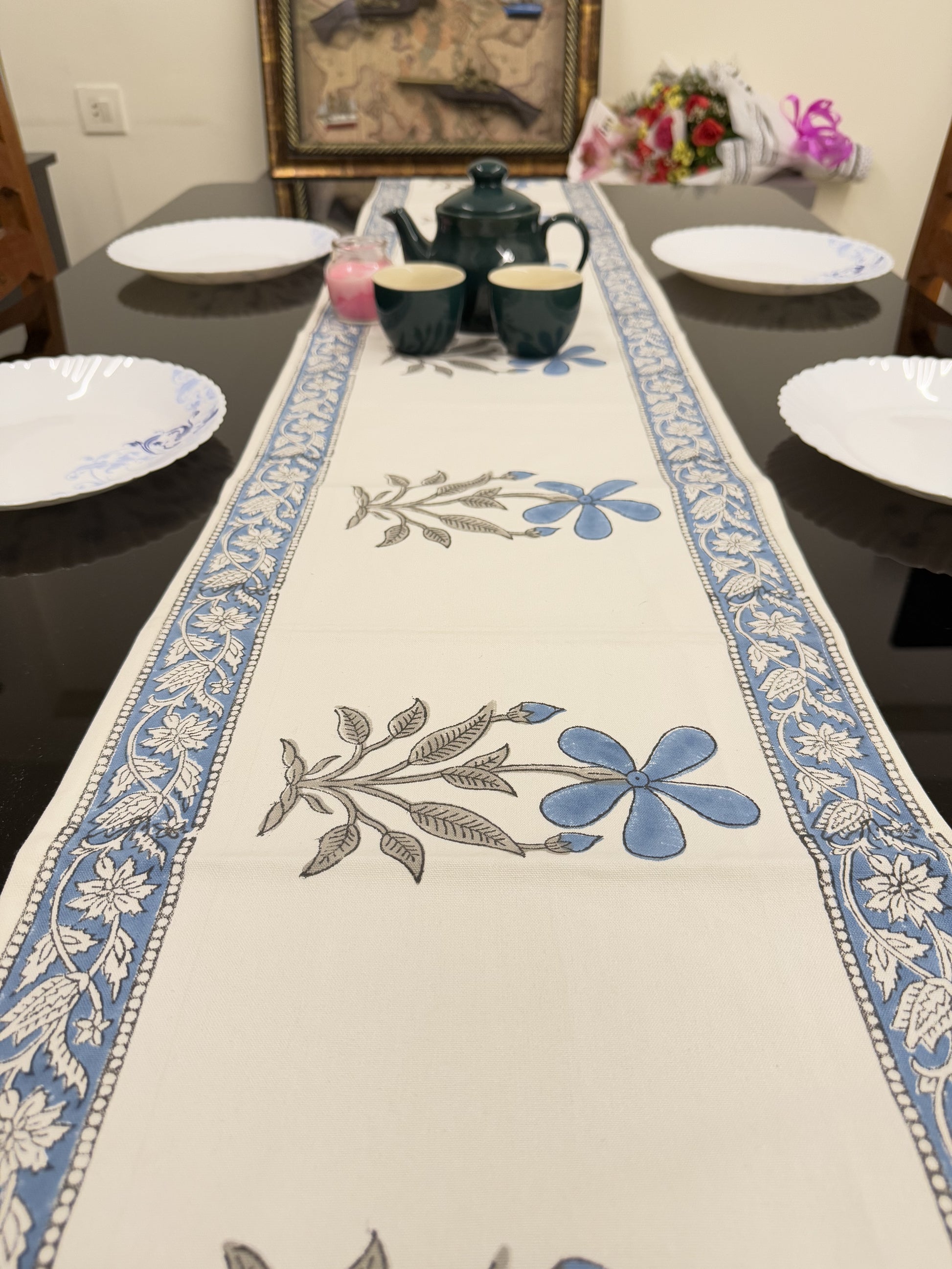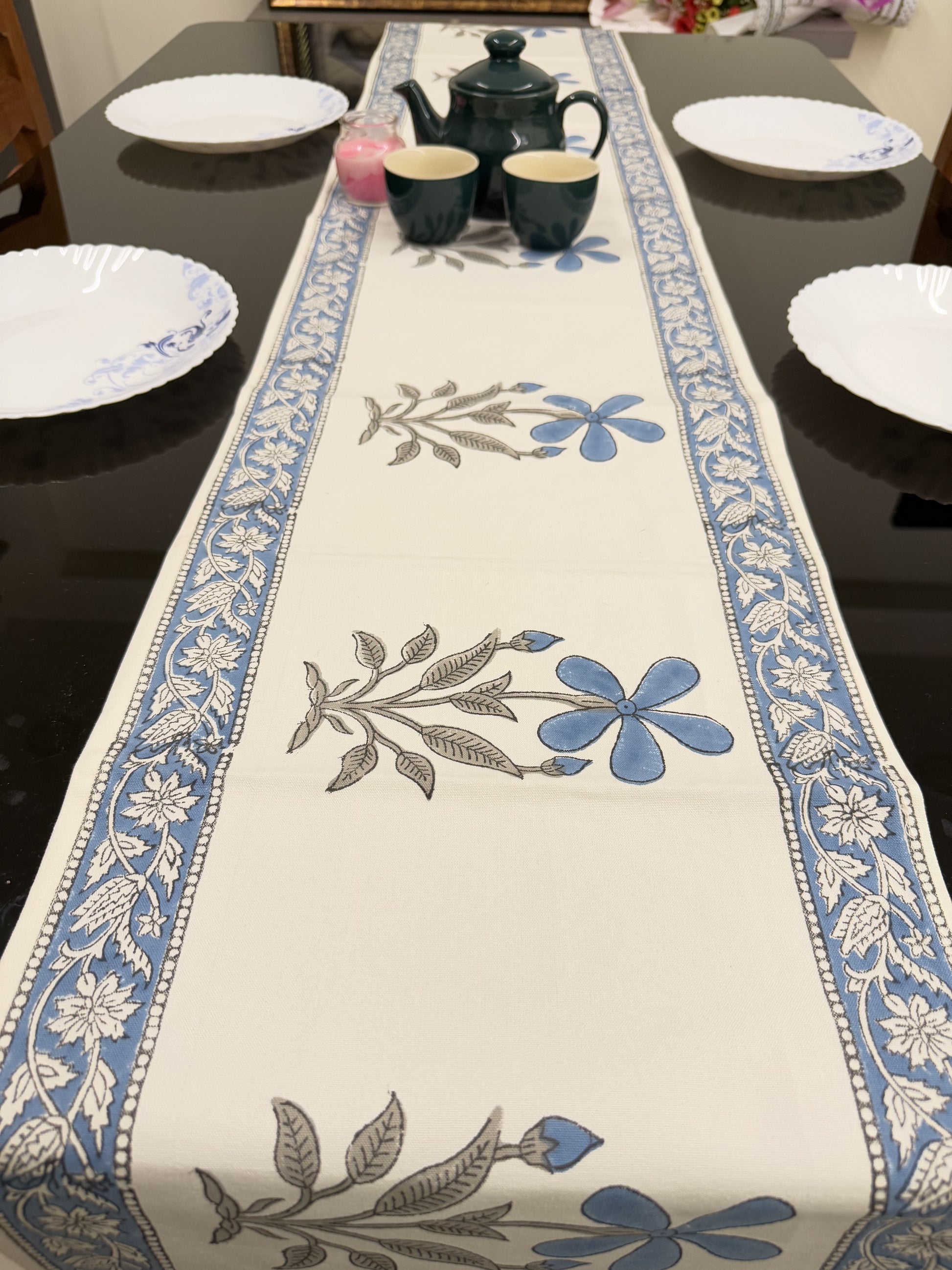 Blue Flower Pure Cotton Rajasthani Handblock Table Runner