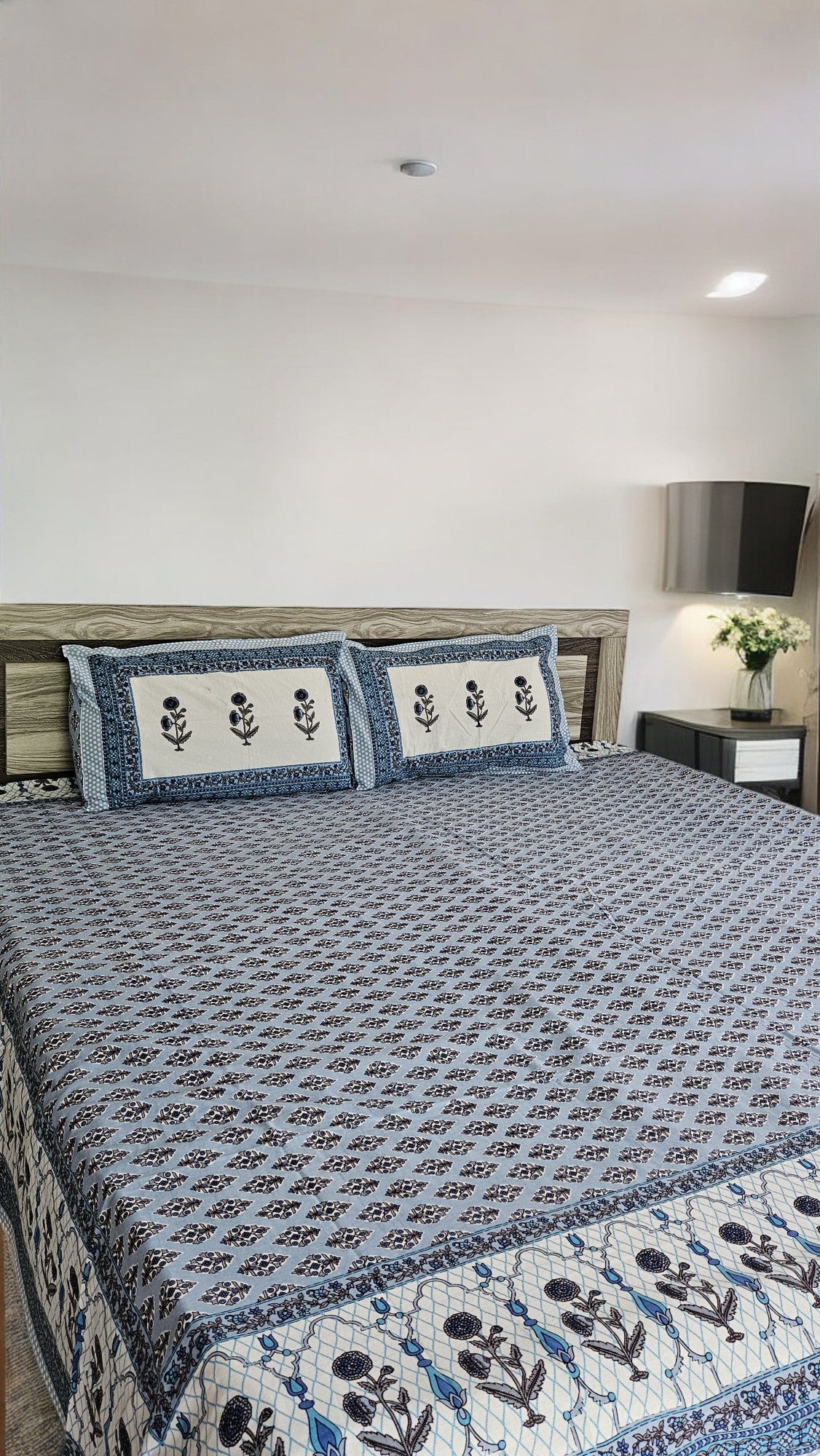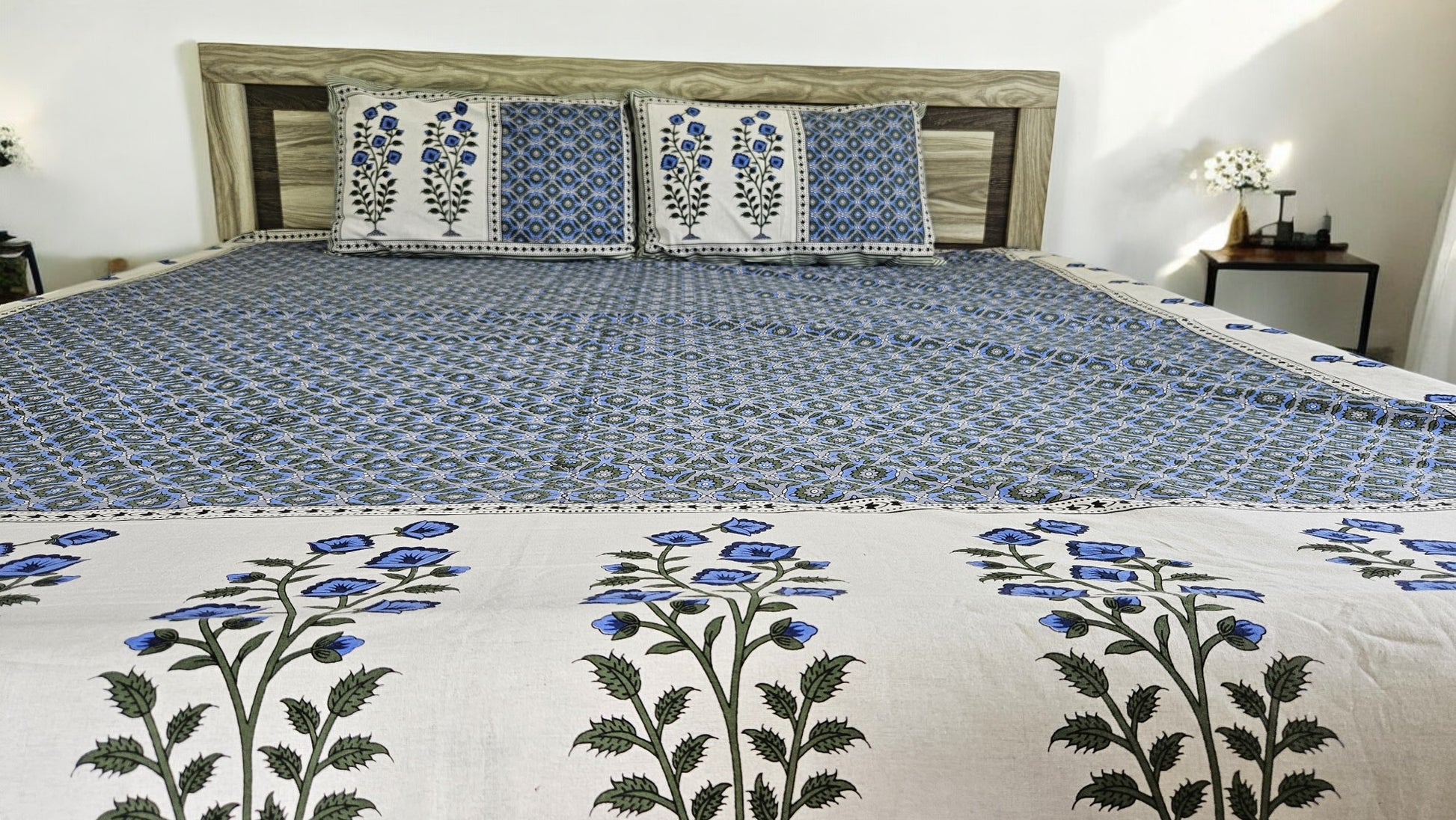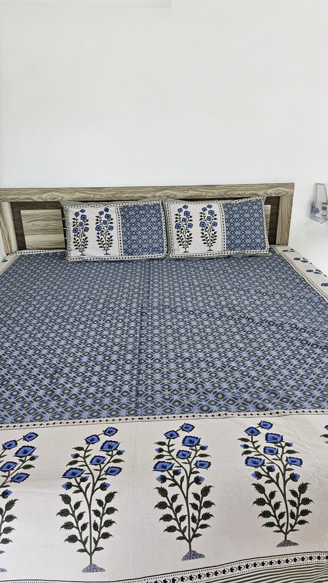 Blue Floral Double Bedsheet with 2 Pillow Cover