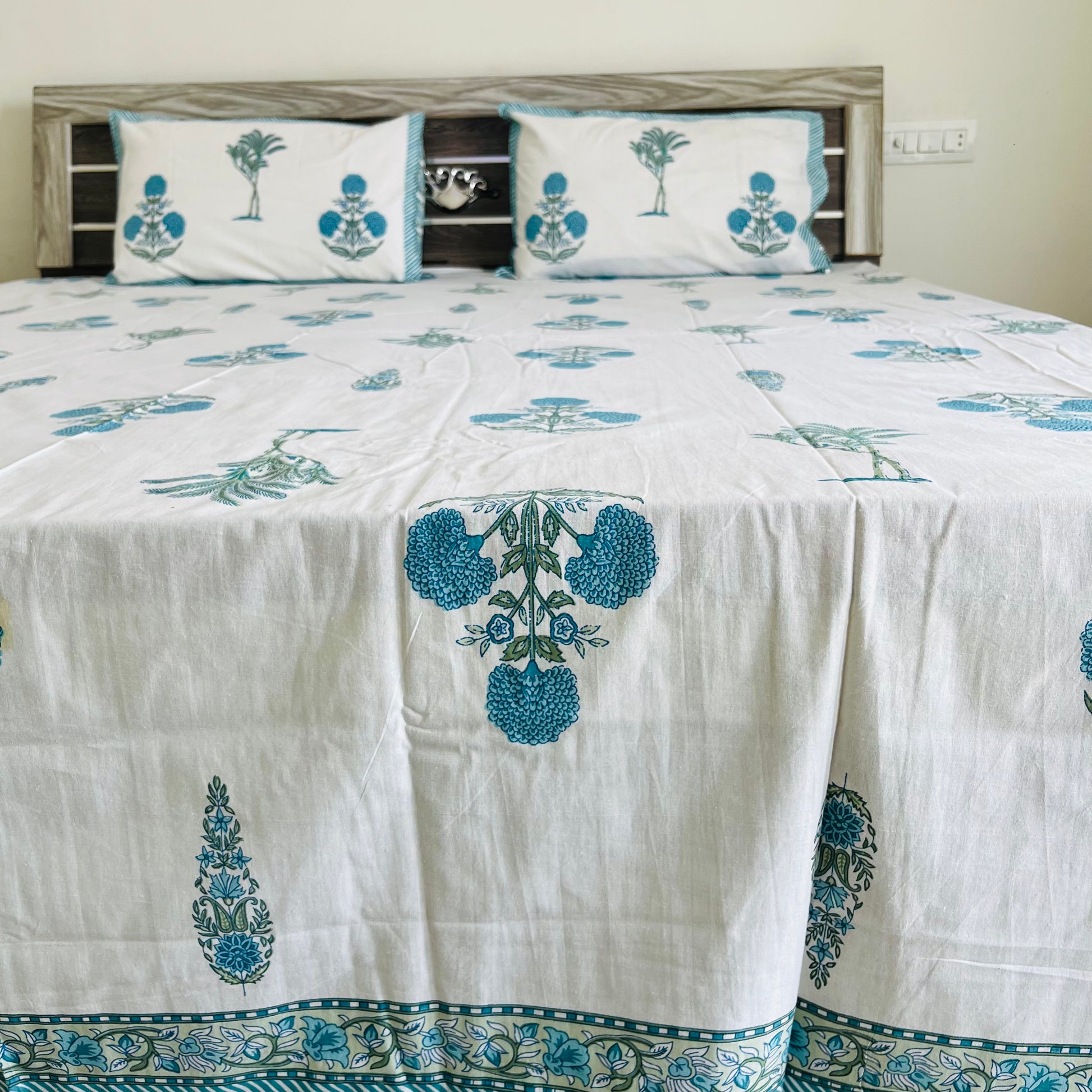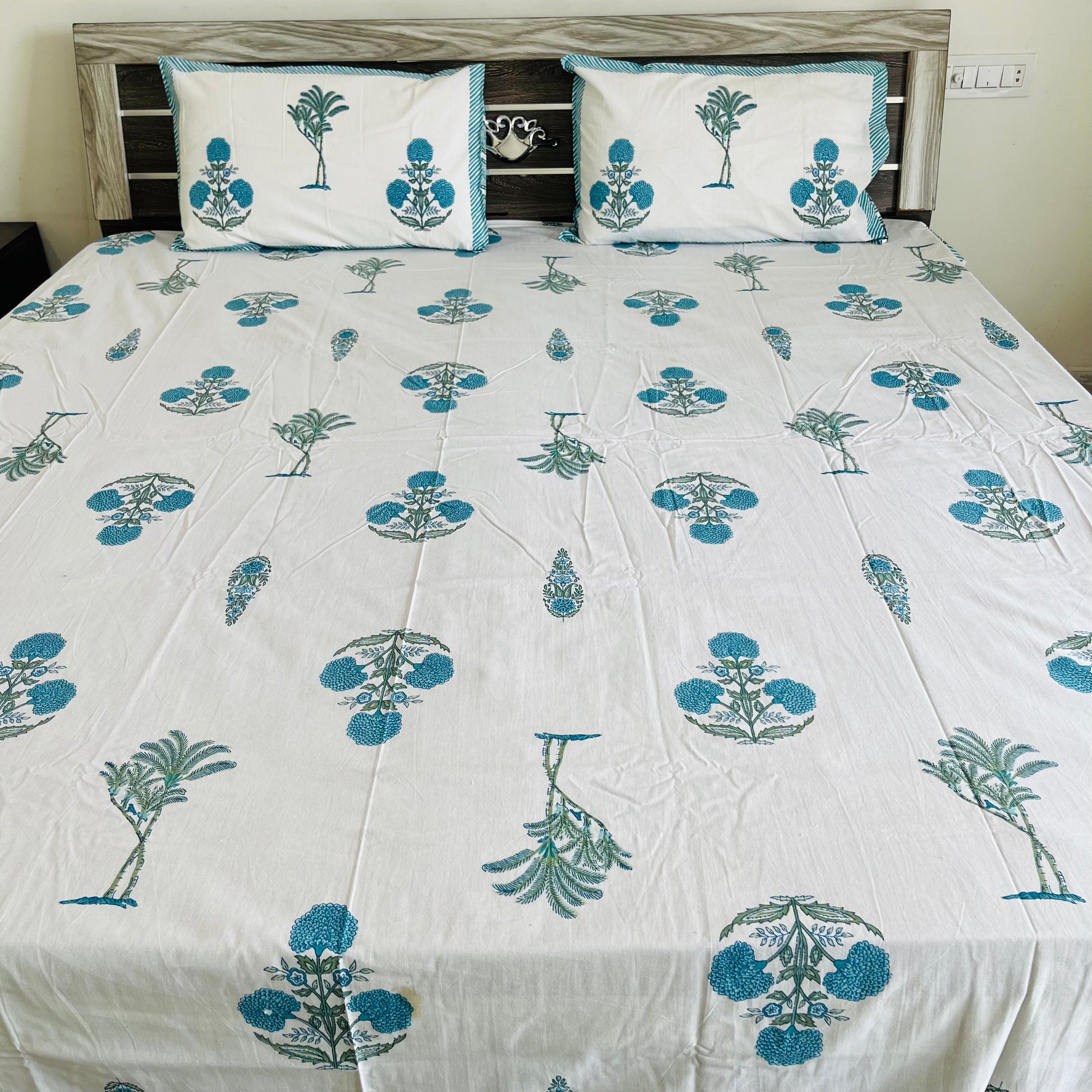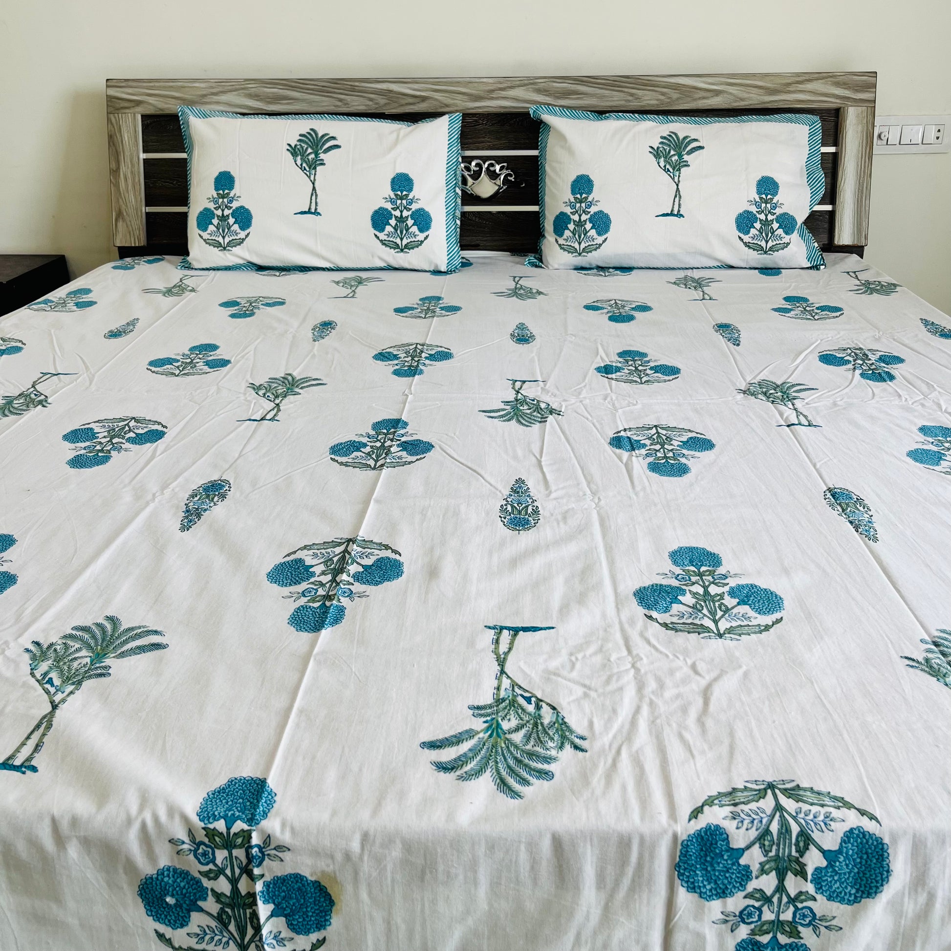 Transform your bedroom into a serene and elegant space with the Blue Floral Handblock Printed Cotton Bedsheet. Made from 100% premium cotton, this eco-friendly bedsheet features a delicate blue floral design, handcrafted using traditional Indian handblock printing techniques. Perfect for double beds, it combines ultimate comfort, durability, and timeless artistry. Ideal for daily use or special occasions, this handblock floral bedsheet adds a touch of sophistication and charm to your home decor. Shop now to bring authentic craftsmanship and beauty to your bedroom!