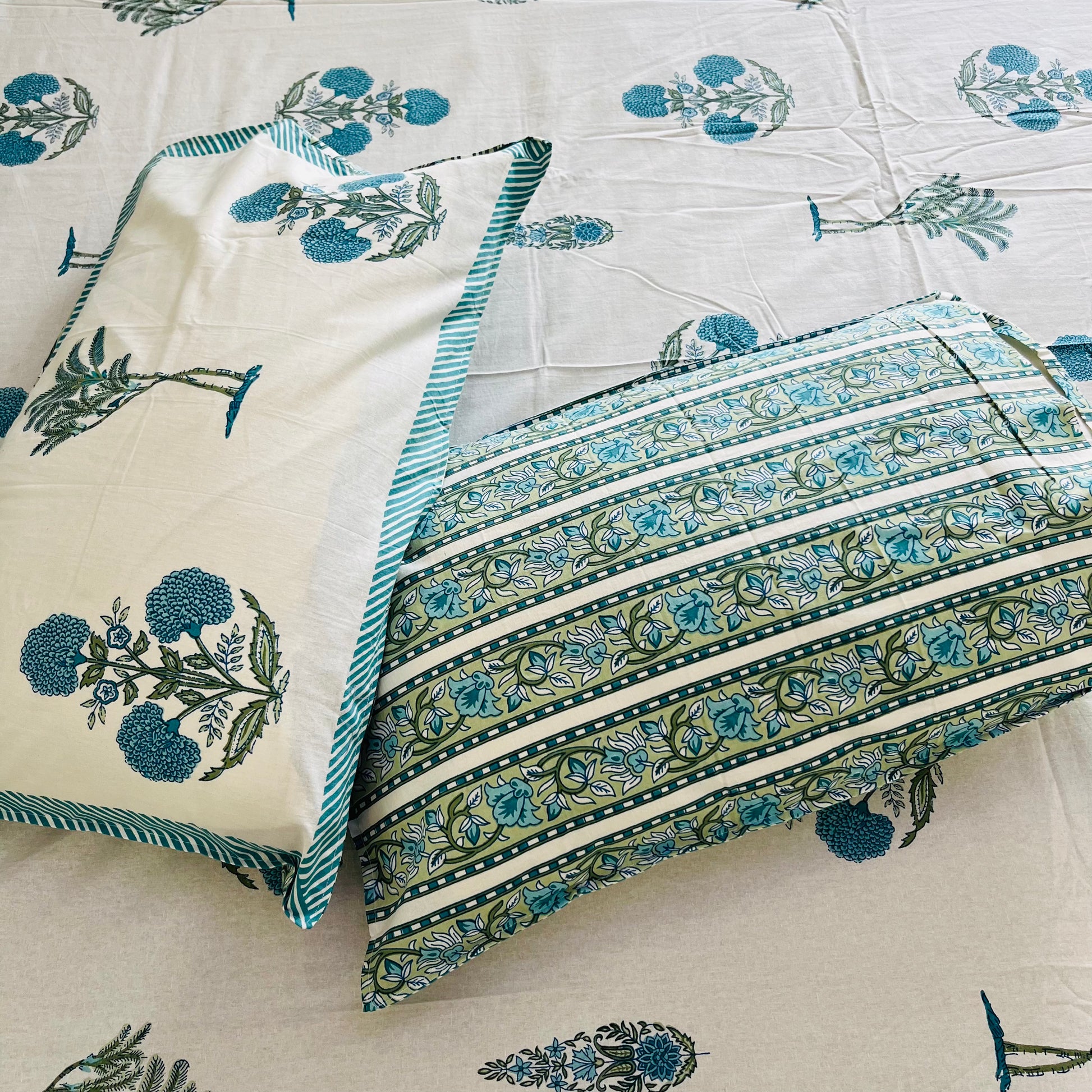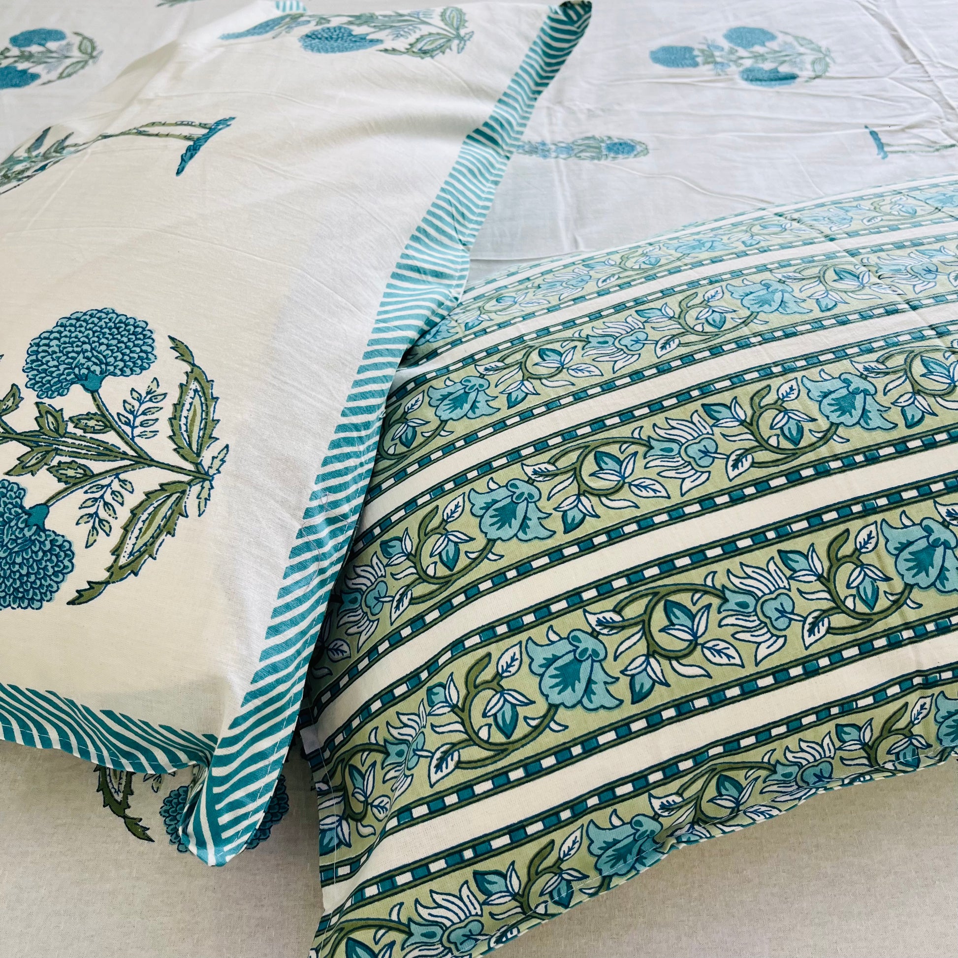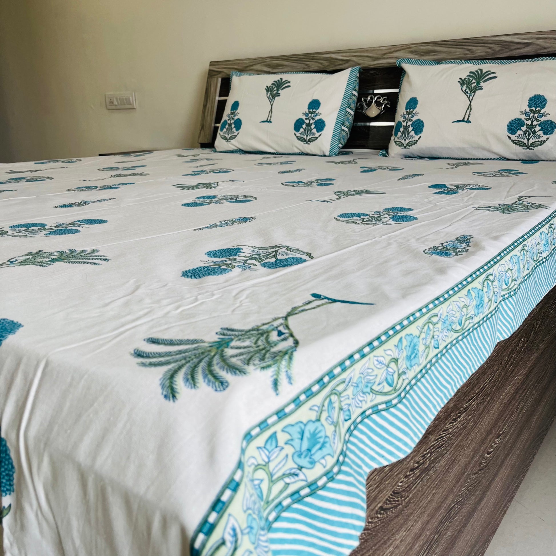 Transform your bedroom into a serene and elegant space with the Blue Floral Handblock Printed Cotton Bedsheet. Made from 100% premium cotton, this eco-friendly bedsheet features a delicate blue floral design, handcrafted using traditional Indian handblock printing techniques. Perfect for double beds, it combines ultimate comfort, durability, and timeless artistry. Ideal for daily use or special occasions, this handblock floral bedsheet adds a touch of sophistication and charm to your home decor. Shop now to bring authentic craftsmanship and beauty to your bedroom!