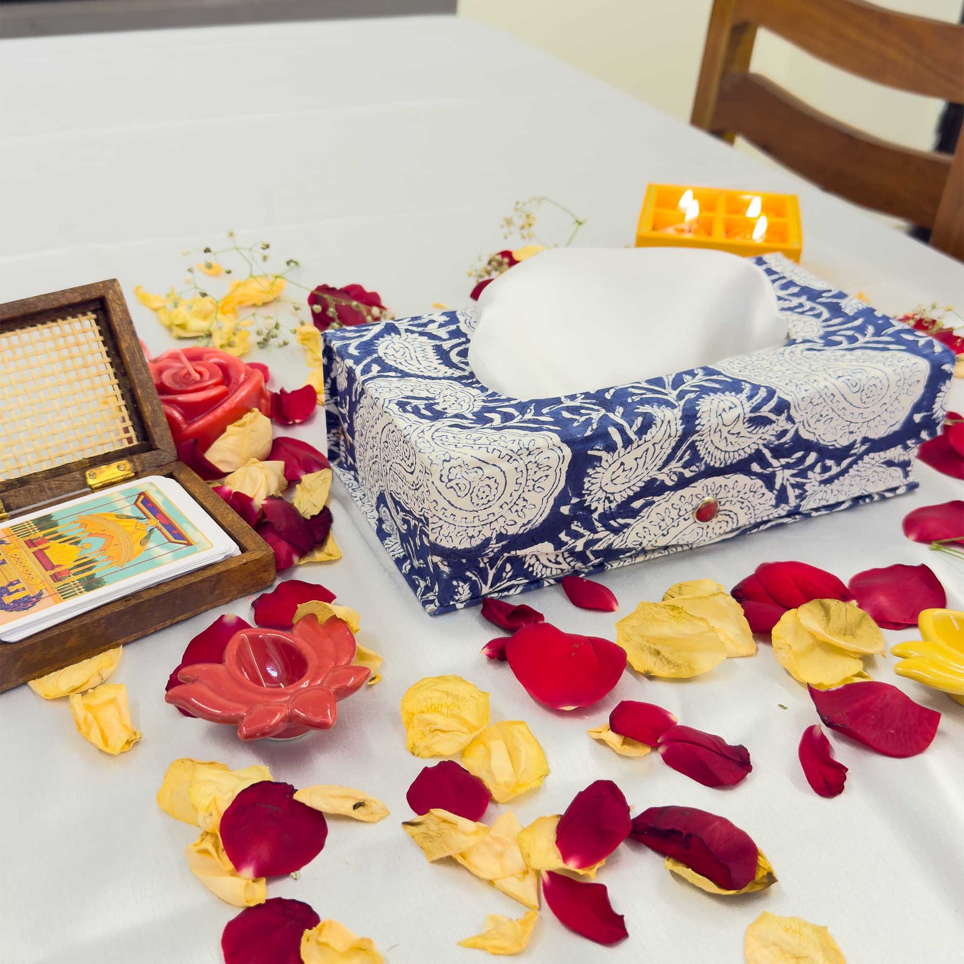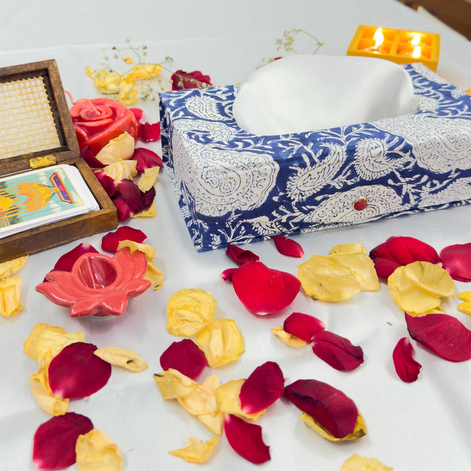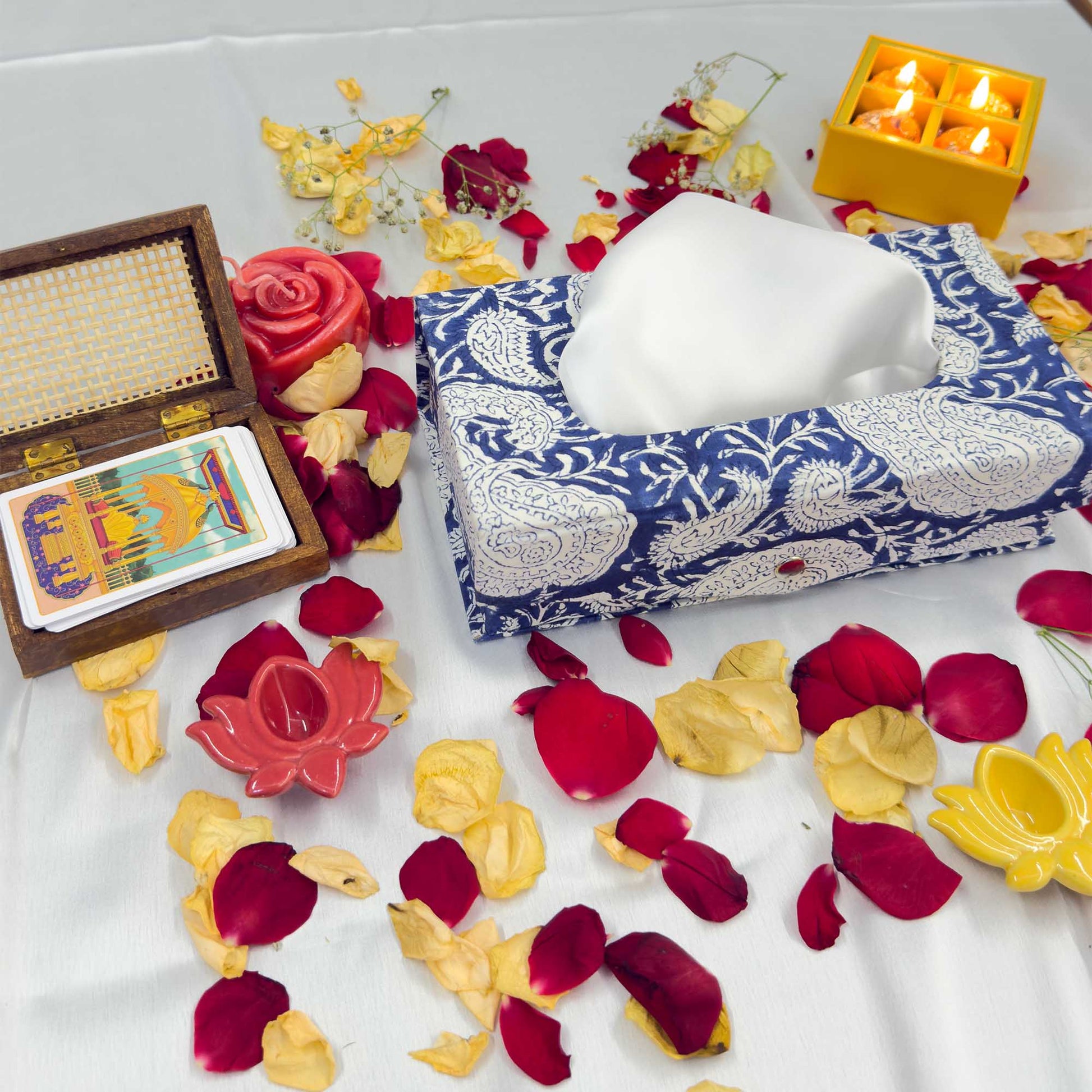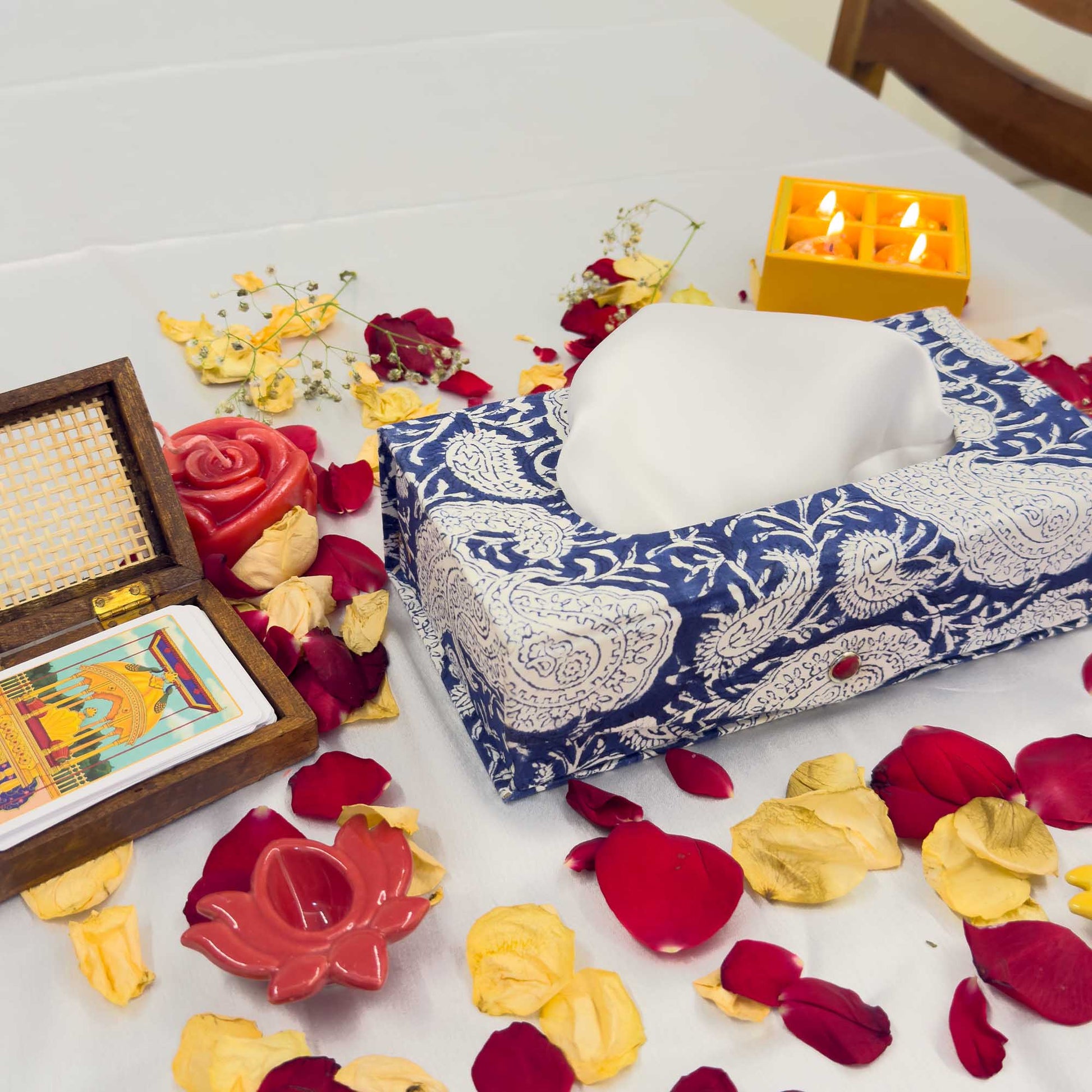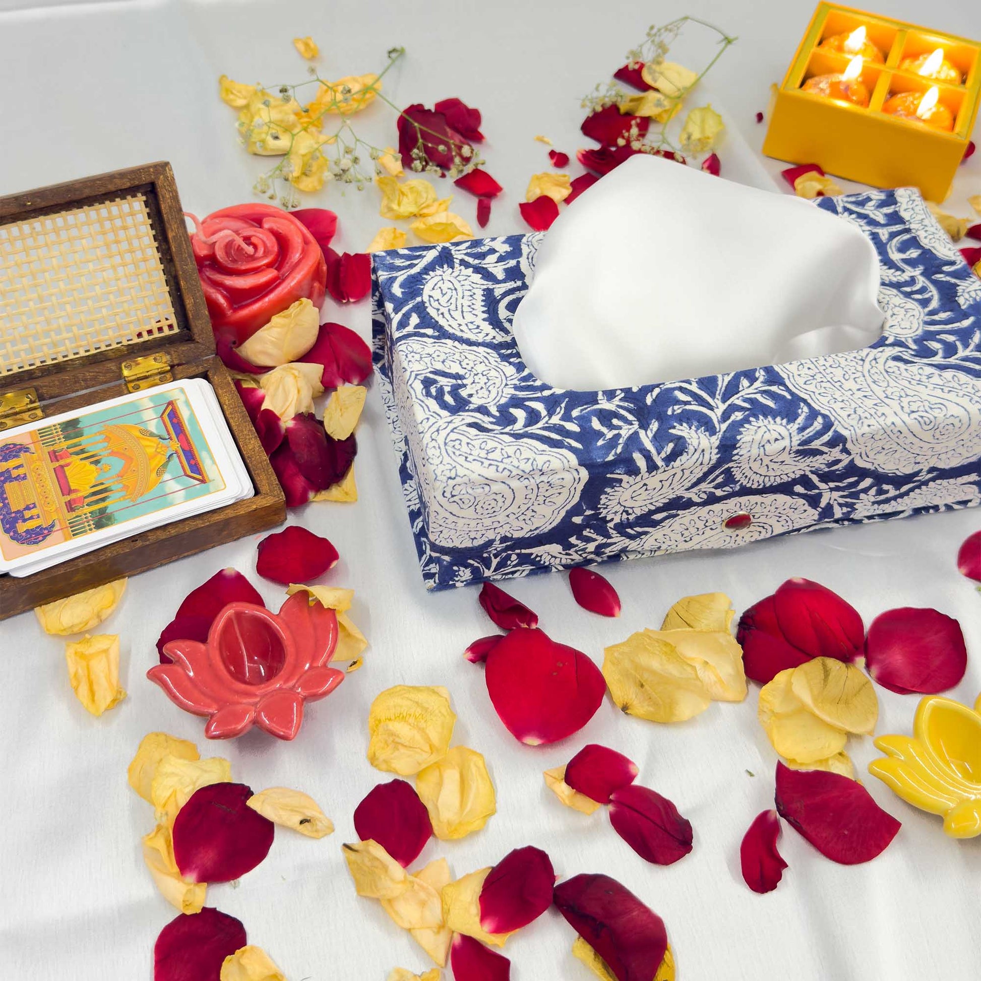 Upgrade your tissue box game with our Handblock Tissue Box! Hand-pressed with the exquisite details, this box adds a touch of elegance to any room. Keep your tissues tidy and in an easily reachable fashion with style and uniqueness. From boring tissue boxes, say goodbye, and hello to functional decor. Make sure to not miss!